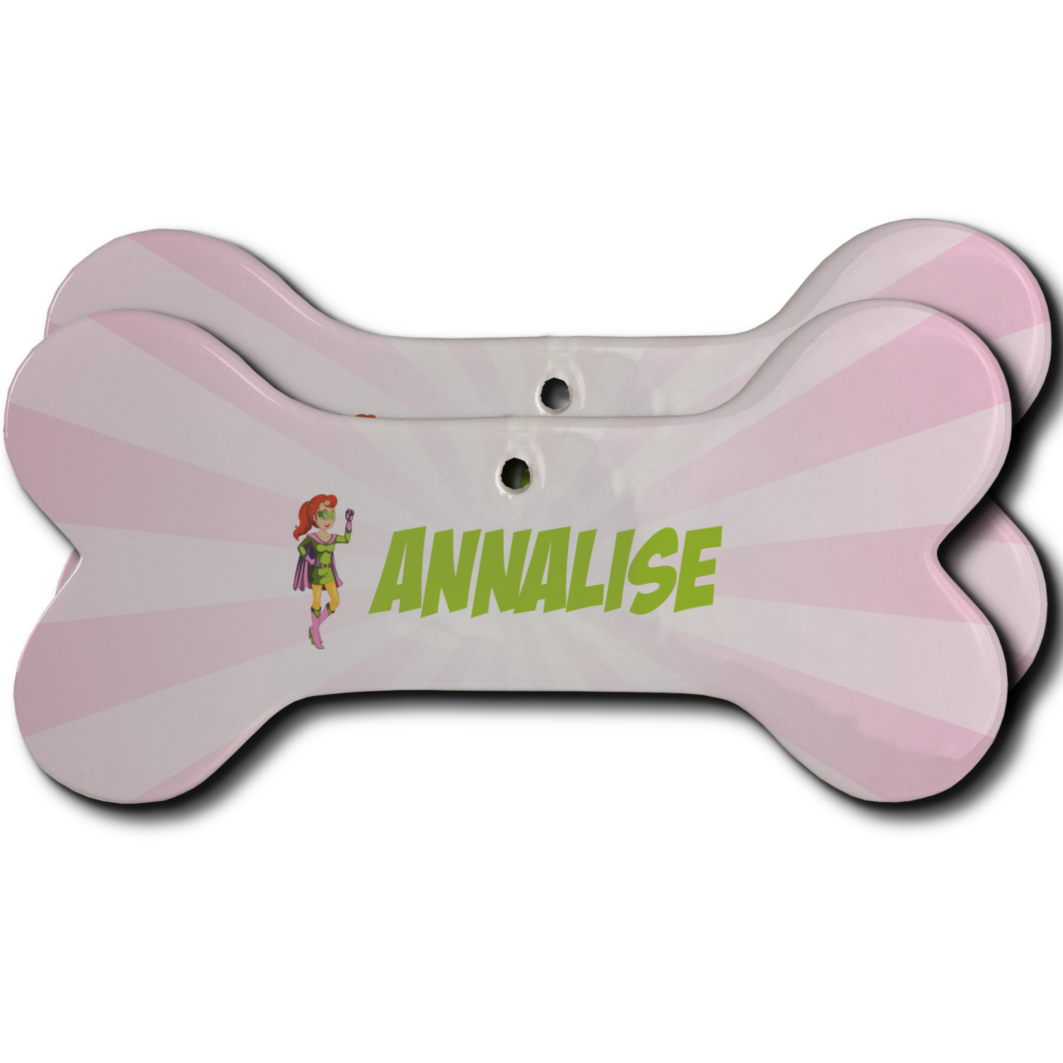Our dog Christmas ornaments are a ceramic material with a bone-shaped structure hung horizontally. We offer two printing styles to personalize your furry friend's ornament! Choose a one-sided printing, perfect for wall decor, memorial accessory, or doghouse nameplate! Create a double-sided ornament perfect for adorning the Christmas tree. Each dog bone ornament is approximately 4.75" x 2.25" and is printed here in the USA.
