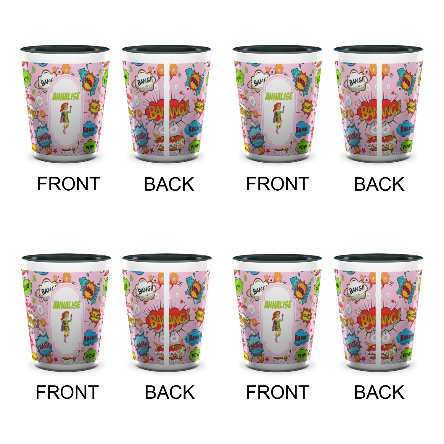 Made from ceramic these shot glasses are printed in full color with the design of your choice. These are a standard 1.5oz size and stand 2.25" tall. Available in a full white ceramic or a two-tone with a black color inside the shot glass. Buy a single or a set of 4, all of which can be designed separately to get you just what you want and need.