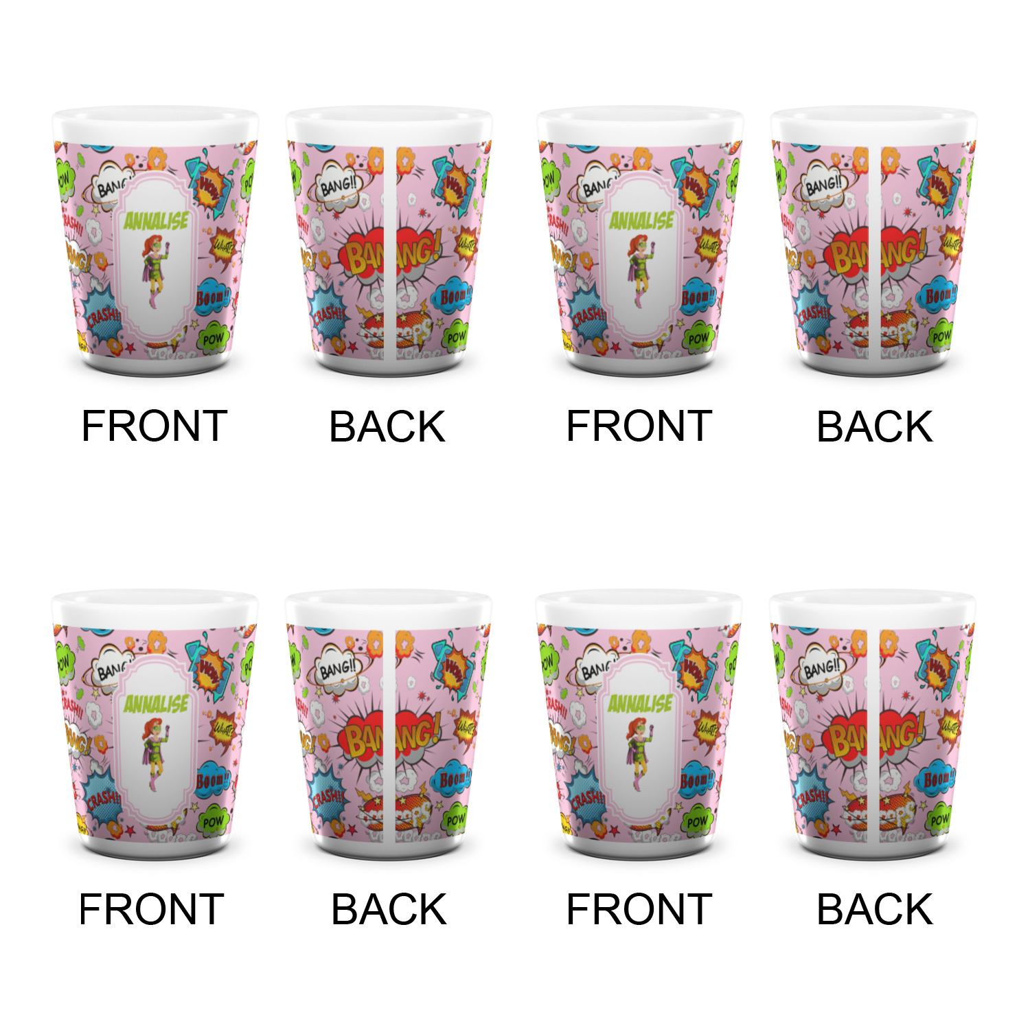 Made from ceramic these shot glasses are printed in full color with the design of your choice. These are a standard 1.5oz size and stand 2.25" tall. Available in a full white ceramic or a two-tone with a black color inside the shot glass. Buy a single or a set of 4, all of which can be designed separately to get you just what you want and need.
