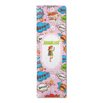 All our superhero women are fully re-color-able - so not only do you decide what color clothes they are wearing, you get to select their hair and skin color as well. So try out our customization system and see what you come up with. We chose a tall frame with the personalization on the top and colored it in matching pink.