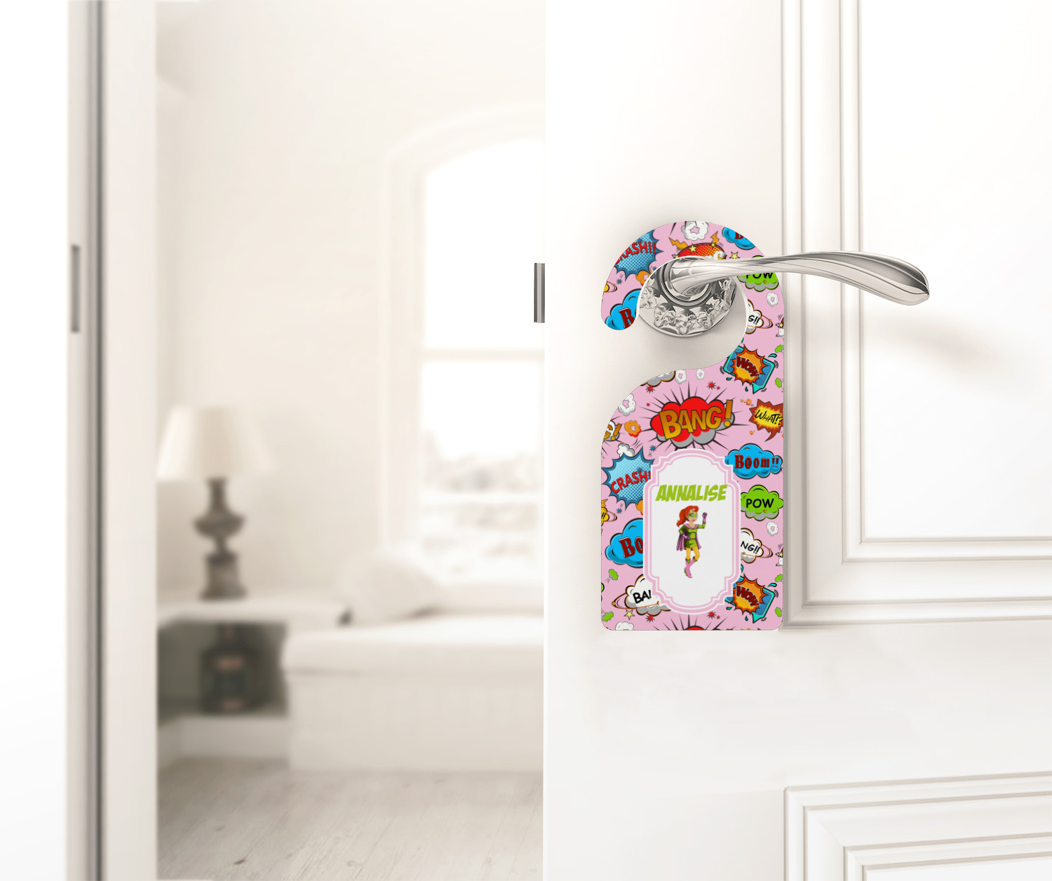 Decorate your door handles with one of our door hangers! These multi-purpose doorknob hangers can be used in a variety of situations; kids can use them to mark their rooms, parents can use them to keep privacy, and they can be used on the doors of nurseries to indicate when the baby is sleeping. Customize a few for some of the rooms in your house today! You could even give these as gifts; give one to the newlyweds in your life, or to a college student so they can use them in their dorm!