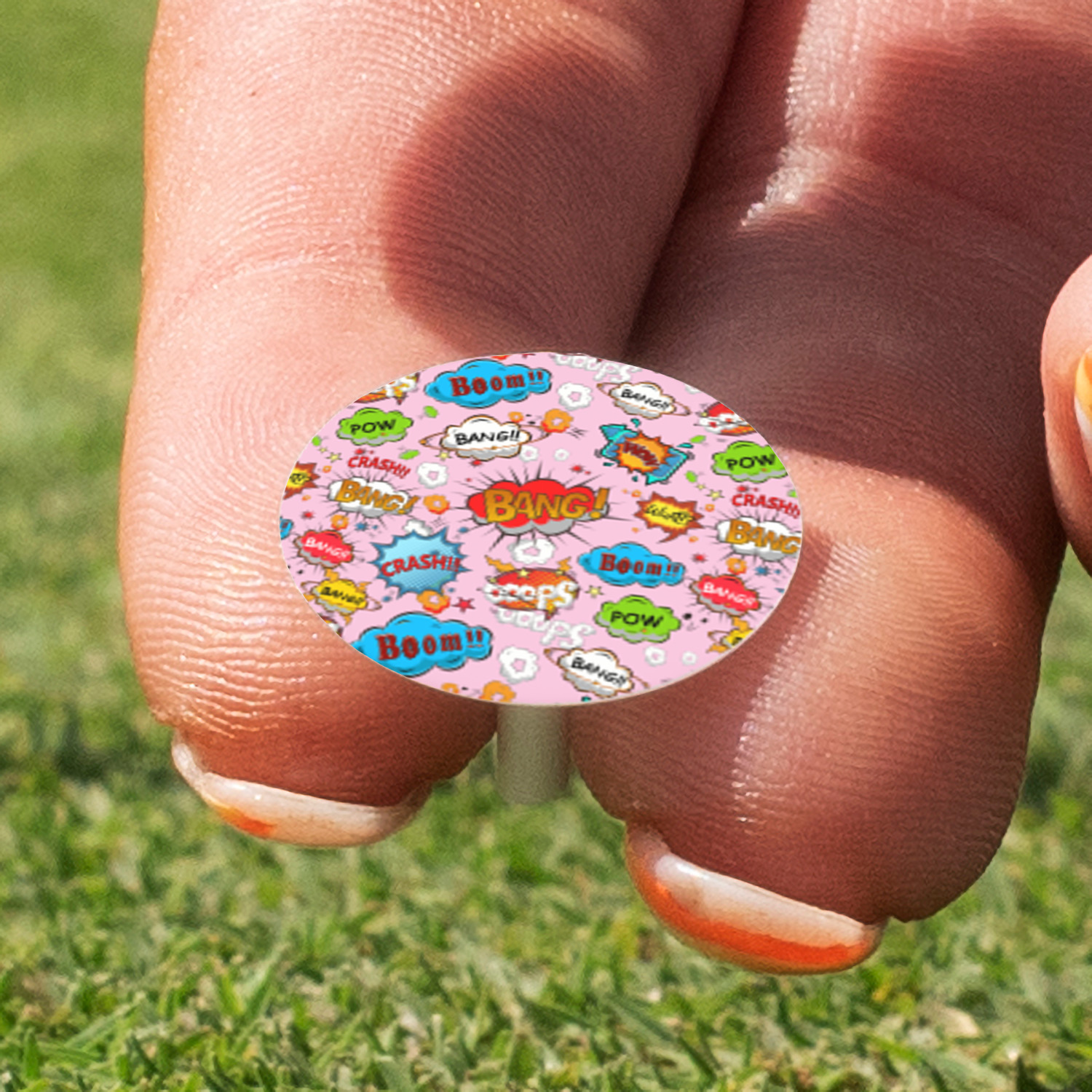 With 12 tees on a lightweight, portable key chain, it almost ensures a great 18 holes. Our tees are made of white plastic and are a little over 2". Design the front and the back of the golf tee holder. Pick from over a hundred designs, colors, and personalization styles! The set even comes with three removable ball markers as well!