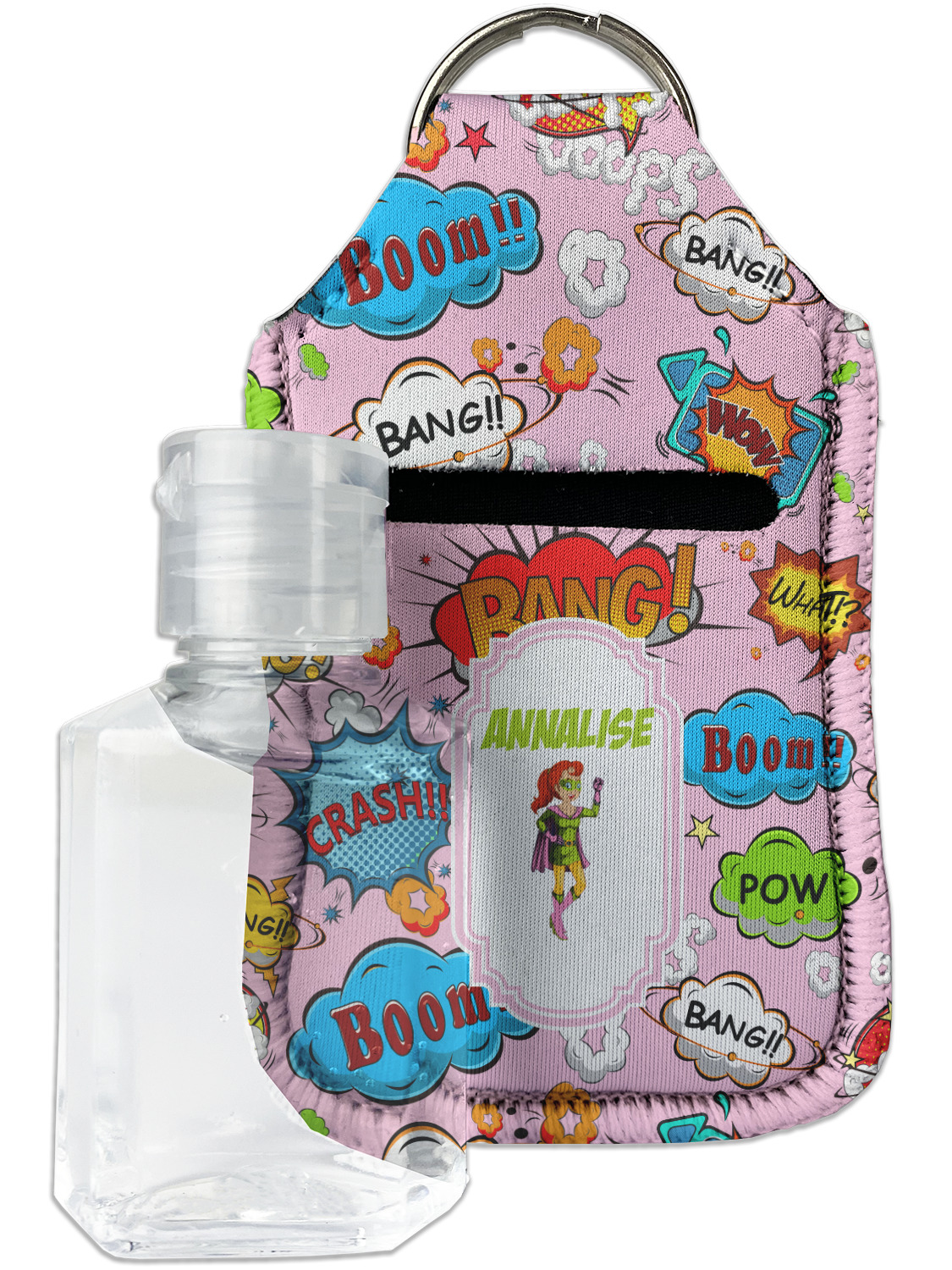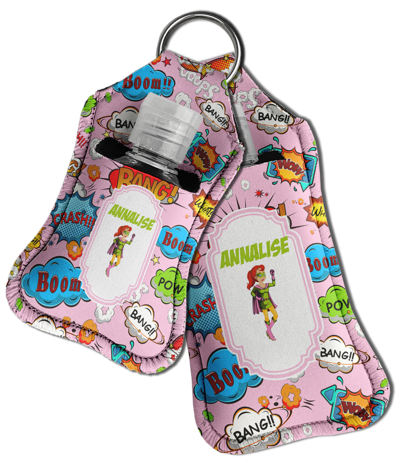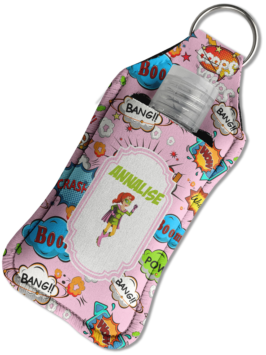 Each hand sanitizer holder comes with its own empty travel-sized, refillable hand sanitizer sure to fit snug in your customized sanitizer case! Our hand sanitizer cases are a durable, yet soft neoprene material sure to last any daily activities or travel agenda. Customize and personalize a hand sanitizer bottle holder with one of our two sizes - small (4.25" x 2.25") or large (5.5" x 2.5"). Each travel sanitizer holder comes with a keyring for attachment on bags, keys, or more!