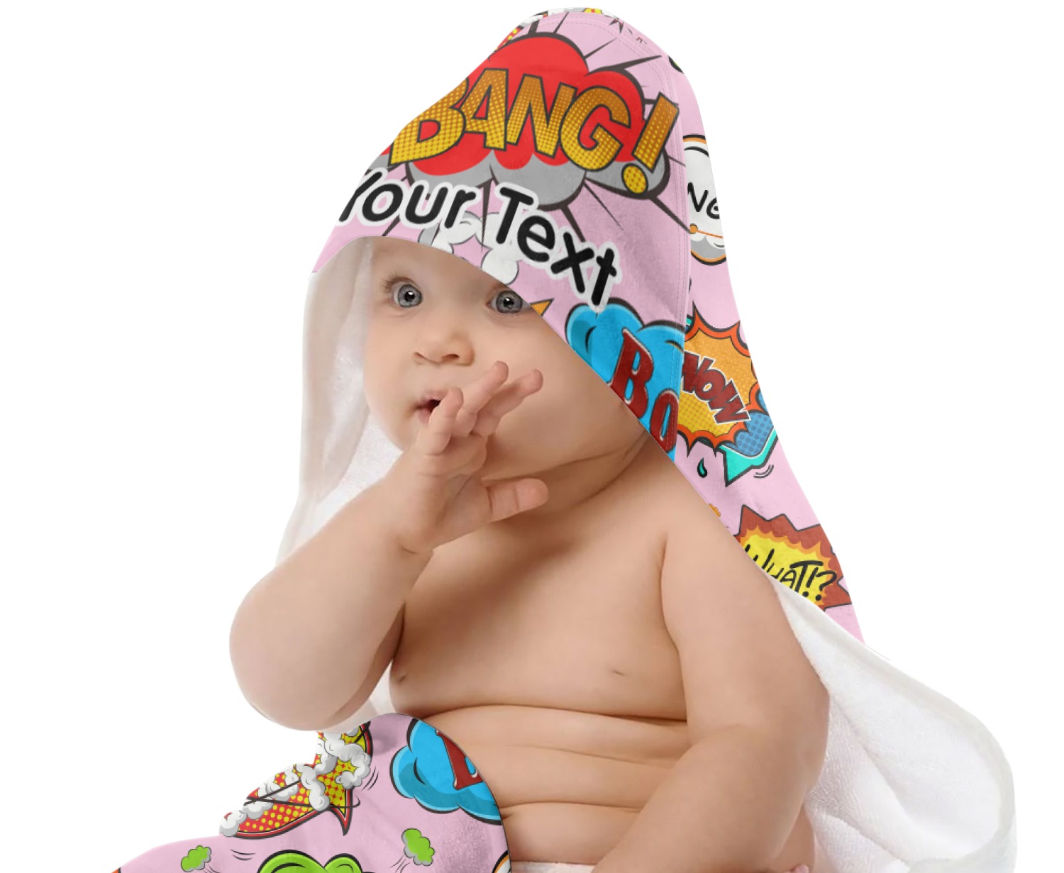 This baby towel is made with a plush microfiber velour and cotton terry. and thus will be soft and gentle against your newborn's skin, but also, very absorbent. Your customization is printed across the front & the hood, while the inside is a classy white.