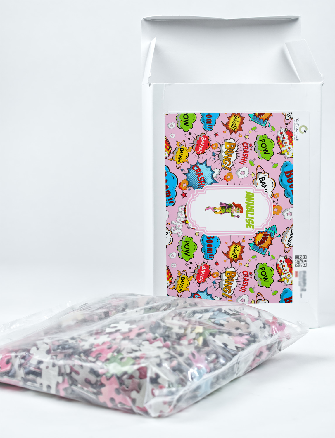 You can also upload your logo or art that you or your kids drew. To create more challenging jigsaw puzzles, you can create a pattern from with your logo or artwork. You can also add other elements such as text or personalization.