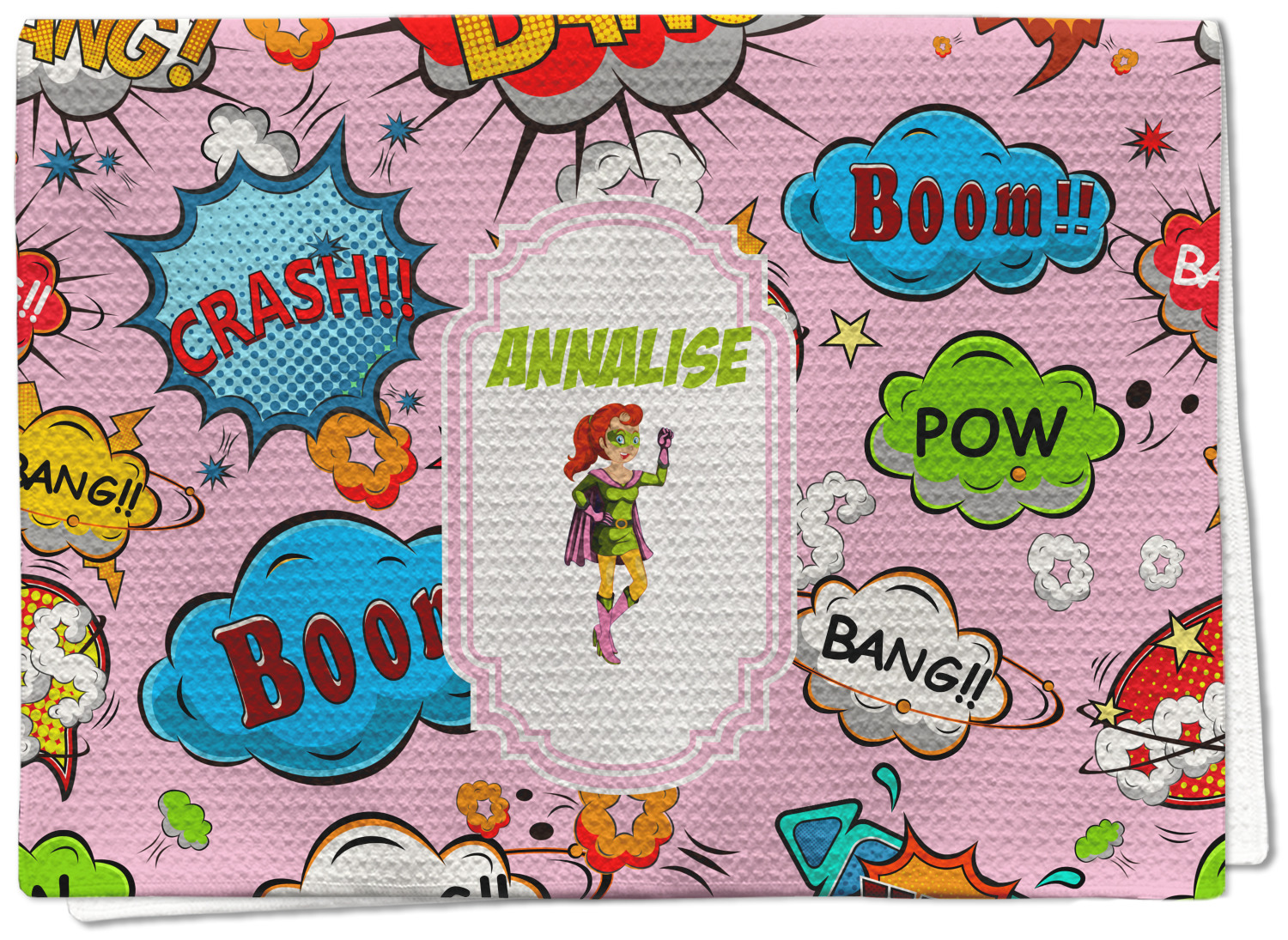 Each waffle weave kitchen towel is approximately 16 x 24 inches with your design printed on one side and the back is white.