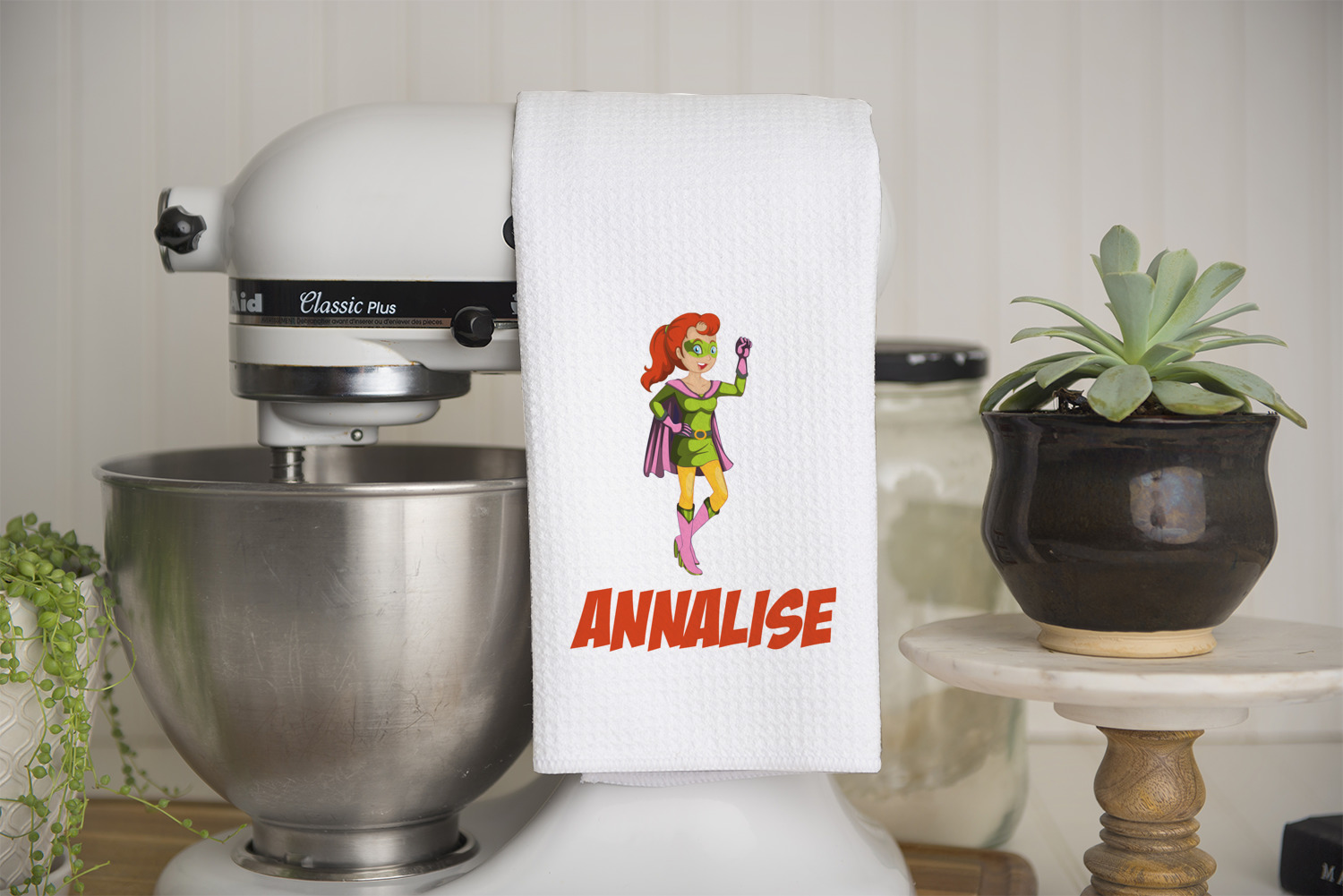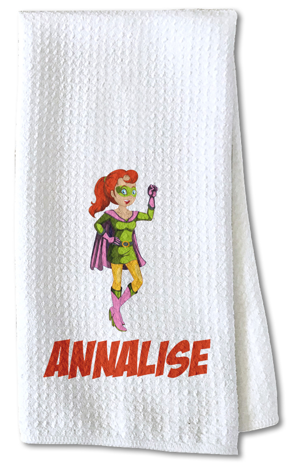 Each waffle weave kitchen towel is approximately 16 x 24 inches with your design printed on one side and the back is white.