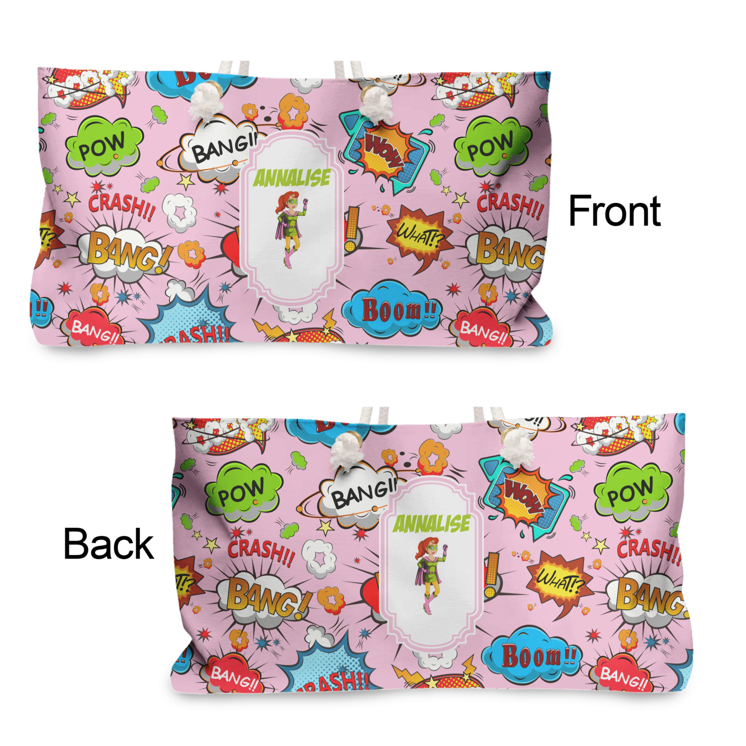 These weekender totes can be customized front and back. The totes are full all over print - so the choice of how background are endless - from beautiful floral or leaf patterns to geometrics or some classic Van Gogh artwork - the possibilities are endless. The totes can also be decorated with photos and logos.
