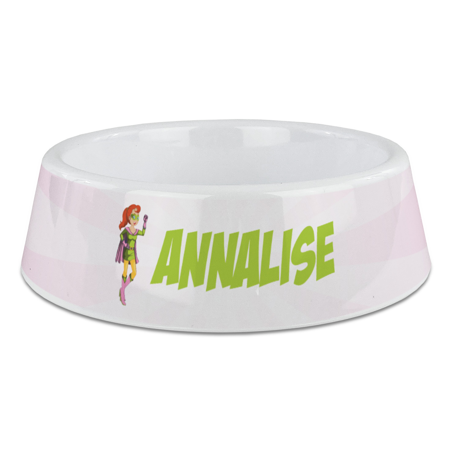 All our superhero women are fully re-color-able - so not only do you decide what color clothes they are wearing, you get to select their hair and skin color as well. So try out our customization system and see what you come up with. We chose a tall frame with the personalization on the top and colored it in matching pink.