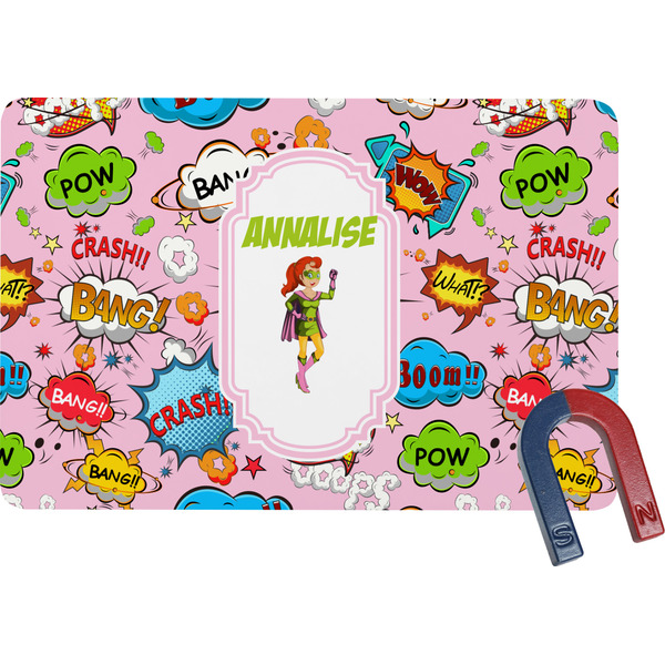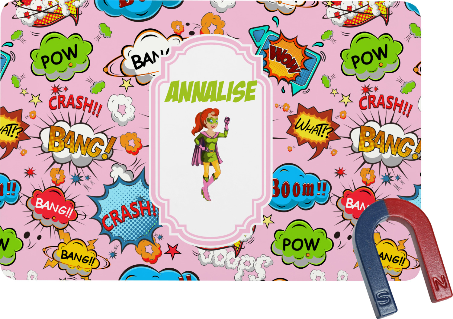 Our custom fridge magnets are crafted from aluminum, and feature a magnetic backing that allows it to adhere to magnetic surfaces, such as your fridge, a locker, dry erase boards, and more! The entire face of the magnet displays your design, and the glossy finish makes the surface of your magnet shine. This custom magnet measures at 2 by 3 inches.