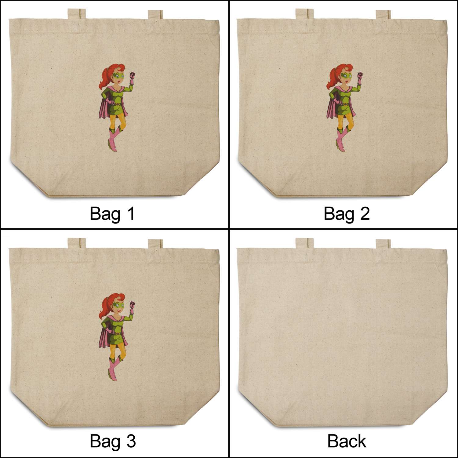 These cotton totes are washable and easy to care for, and they can be folded flat for storage. Your artwork, logo, or photo is printed in full color directly on the cotton tote in the front.