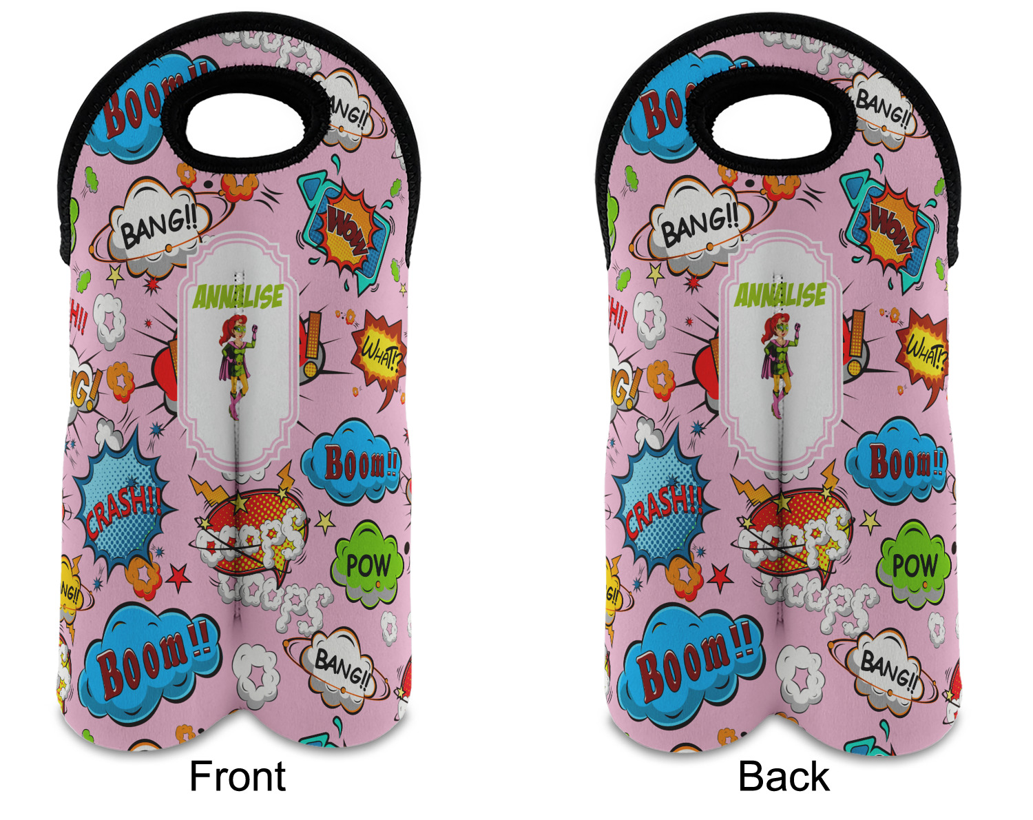 These tote bags are insulated to keep the bottles cold and have a stitched separation down the middle and double handles to keep the two bottles safe and secure during travels.