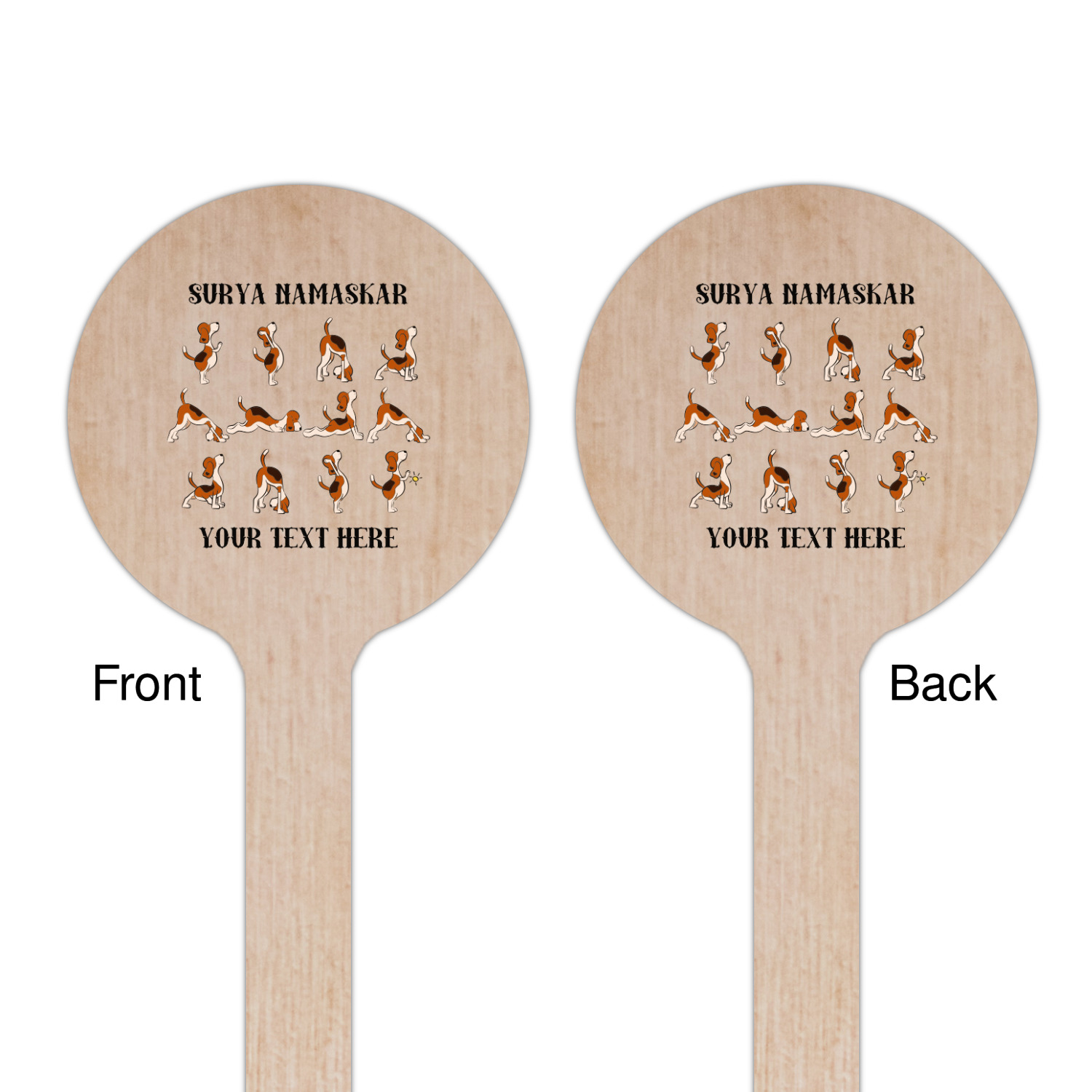 This design has a bright and happy background with little suns that are light yellow, while the rest is a slightly darker bright yellow. The main piece of the design is the set of adorable dogs doing yoga in several different positions. Your personalization goes above and below these graphics.