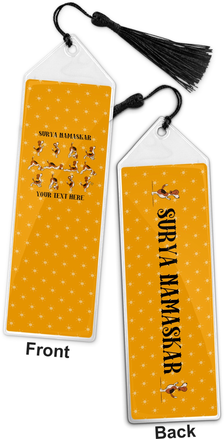 Your personalized bookmark is made of a sturdy, clear vinyl, and is approximately 7.5" x 2.25". We display your personalization on vinyl inserts that are placed on both sides. Accompanying each book marker is a black, fringe tassel that attaches to the reinforced, triangular header.