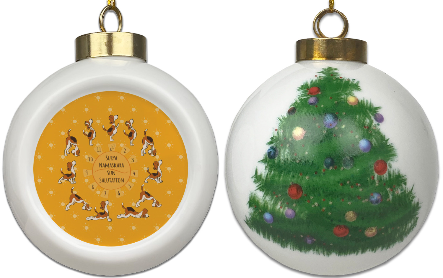 Our Christmas ornaments are a unique ceramic ball shape with a twist as it has a flat face to display your custom design! Select from one of our two design types - Christmas Tree or Poinsettia Garland - to adorn the curved back of your personal design. Each ornament measures 3H x 2.5W x 2D accompanied with a gold string accent for finishing touches to hang on your beautiful Christmas tree!