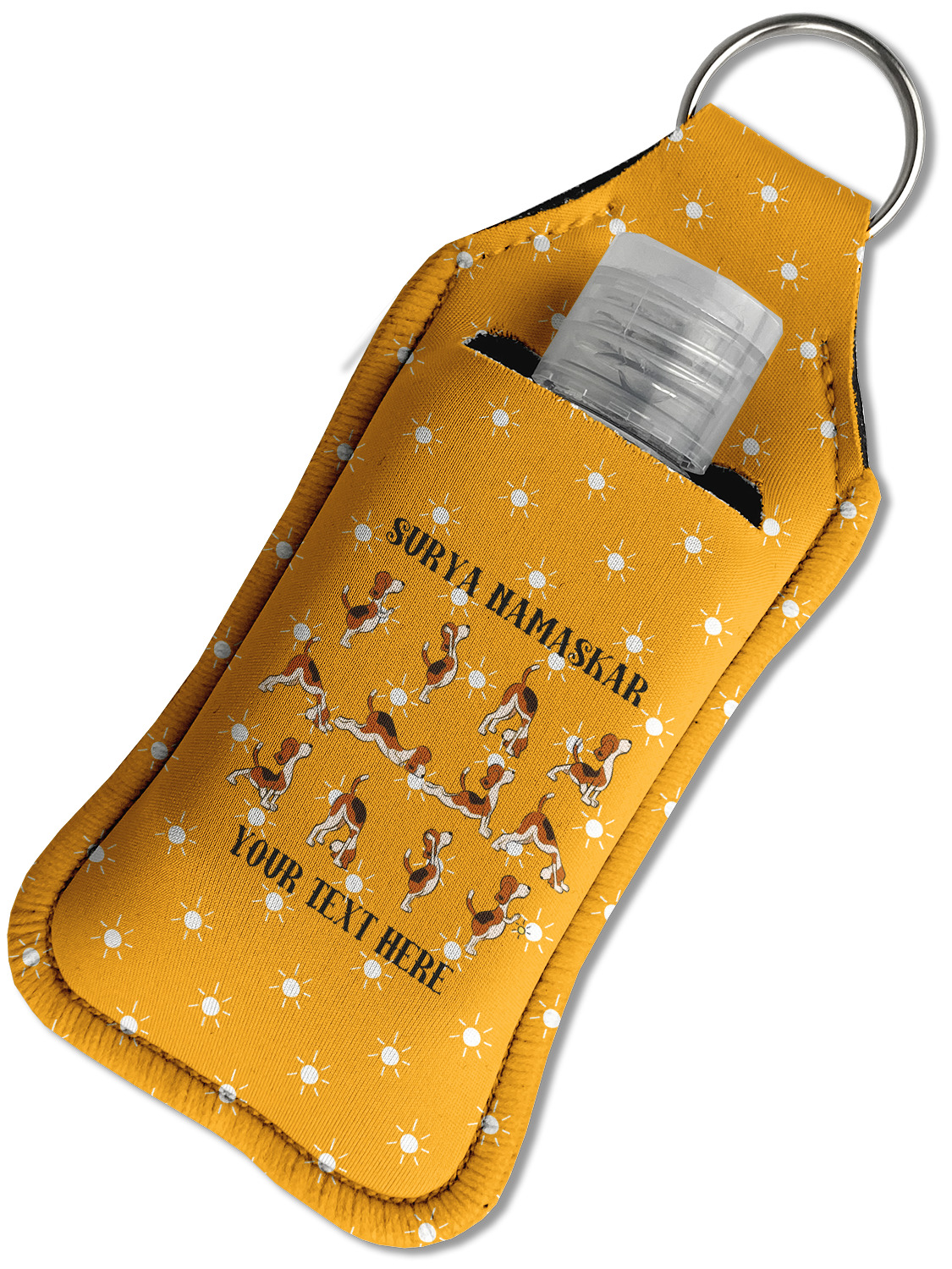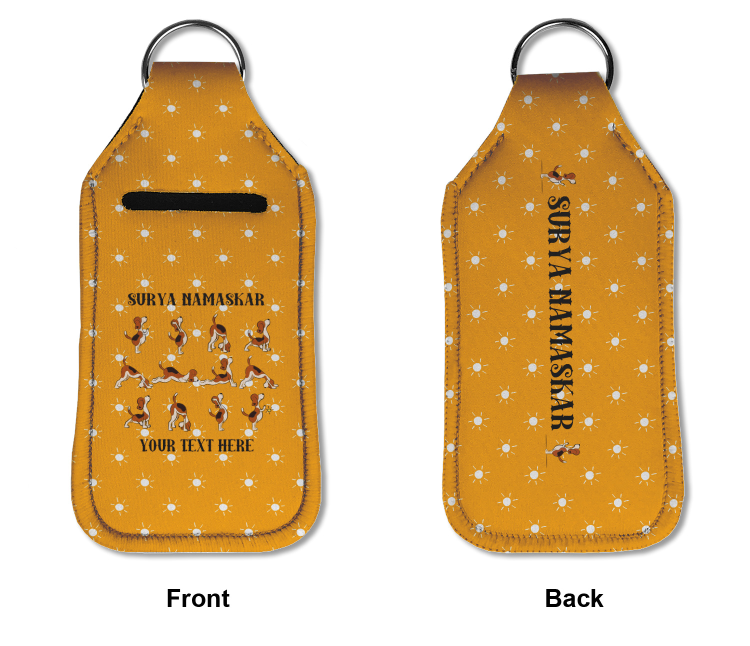 Each hand sanitizer holder comes with its own empty travel-sized, refillable hand sanitizer sure to fit snug in your customized sanitizer case! Our hand sanitizer cases are a durable, yet soft neoprene material sure to last any daily activities or travel agenda. Customize and personalize a hand sanitizer bottle holder with one of our two sizes - small (4.25" x 2.25") or large (5.5" x 2.5"). Each travel sanitizer holder comes with a keyring for attachment on bags, keys, or more!