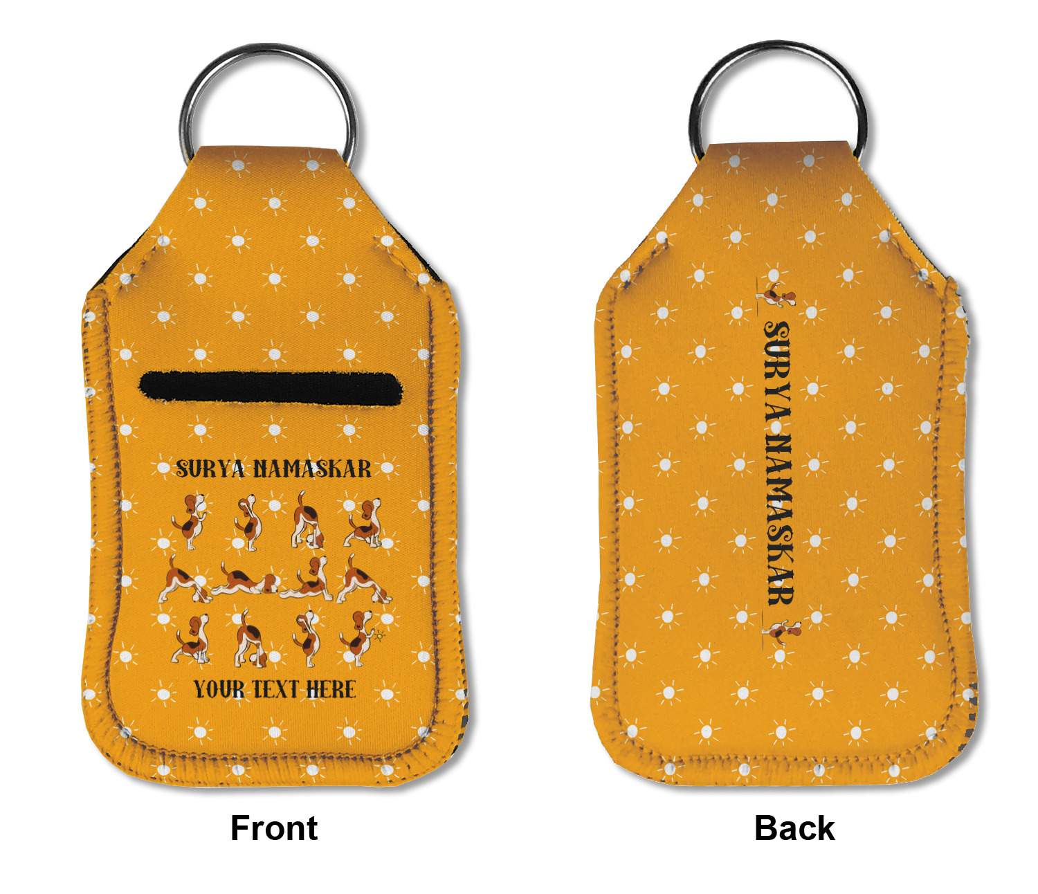 Each hand sanitizer holder comes with its own empty travel-sized, refillable hand sanitizer sure to fit snug in your customized sanitizer case! Our hand sanitizer cases are a durable, yet soft neoprene material sure to last any daily activities or travel agenda. Customize and personalize a hand sanitizer bottle holder with one of our two sizes - small (4.25" x 2.25") or large (5.5" x 2.5"). Each travel sanitizer holder comes with a keyring for attachment on bags, keys, or more!