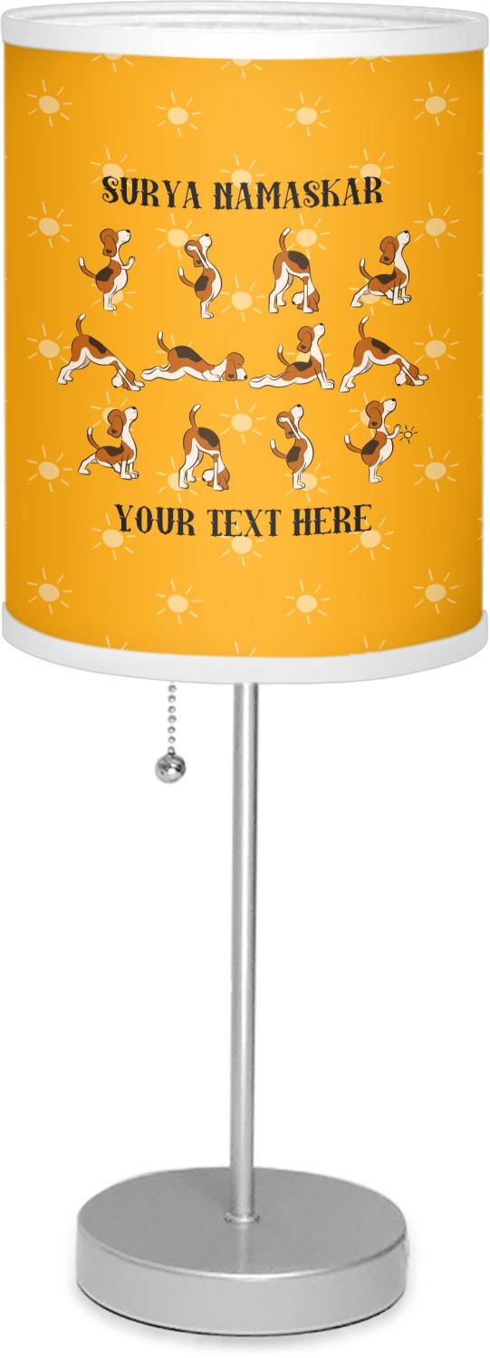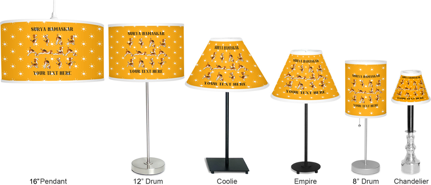 This design has a bright and happy background with little suns that are light yellow, while the rest is a slightly darker bright yellow. The main piece of the design is the set of adorable dogs doing yoga in several different positions. Your personalization goes above and below these graphics.