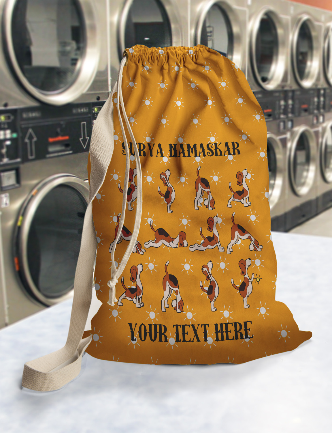 Carry your laundry in style with these customized laundry bags. Available in two sizes, featuring a natural colored woven strap and a cinch cord, these bags hold a lot of clothes or anything else you want to fit in them.