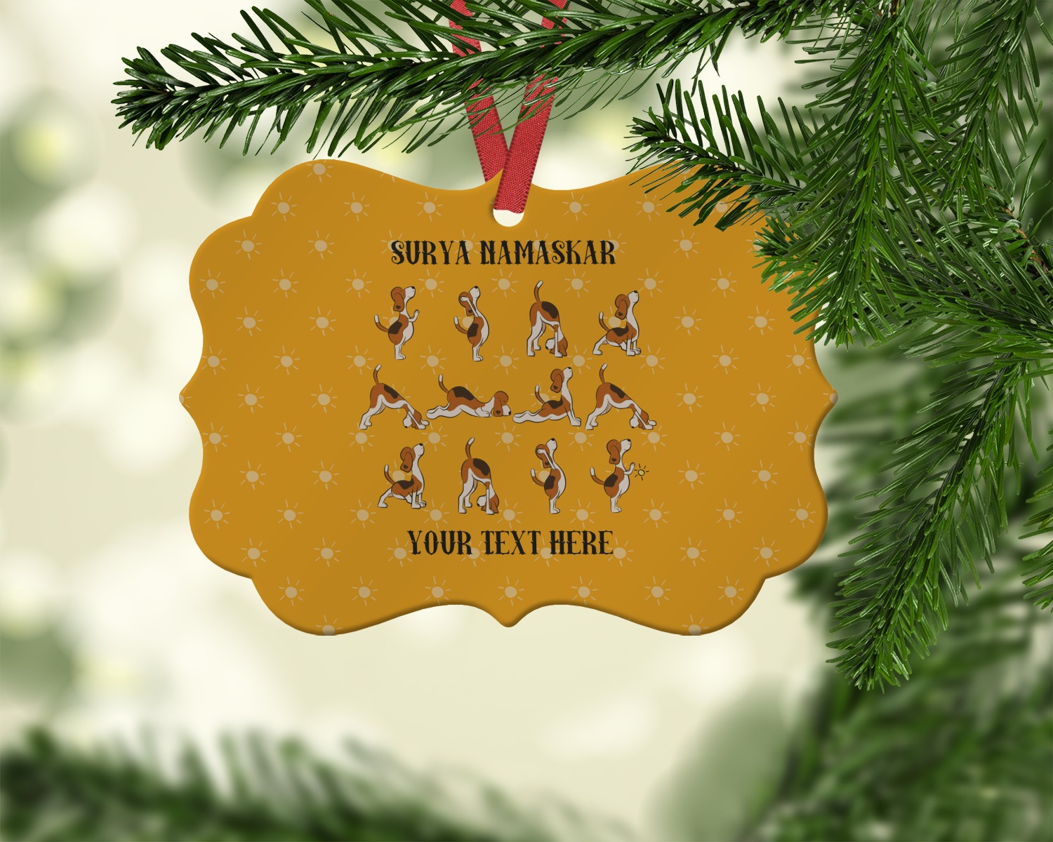 This design has a bright and happy background with little suns that are light yellow, while the rest is a slightly darker bright yellow. The main piece of the design is the set of adorable dogs doing yoga in several different positions. Your personalization goes above and below these graphics.