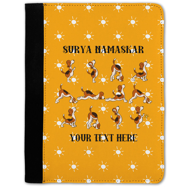 These personalized padfolios are made from a black, polyester microfiber and features a standard, 50-page notepad. However, these black padfolios can accommodate a pad with up to 100 pages. This model also features a slot pocket for any loose sheets of paper, small pockets for business cards, and an elastic band to secure a pen. We print your personalization across the front of this notepad portfolio in bright, vibrant color. These padfolios come in 2 sizes, Medium - approximately 10.25" x 8" for 5" x 8" paper and Large - approximately 12.5" x 8.5" for 8.5" x 11" paper.