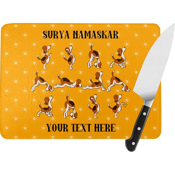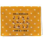 This design has a bright and happy background with little suns that are light yellow, while the rest is a slightly darker bright yellow. The main piece of the design is the set of adorable dogs doing yoga in several different positions. Your personalization goes above and below these graphics.