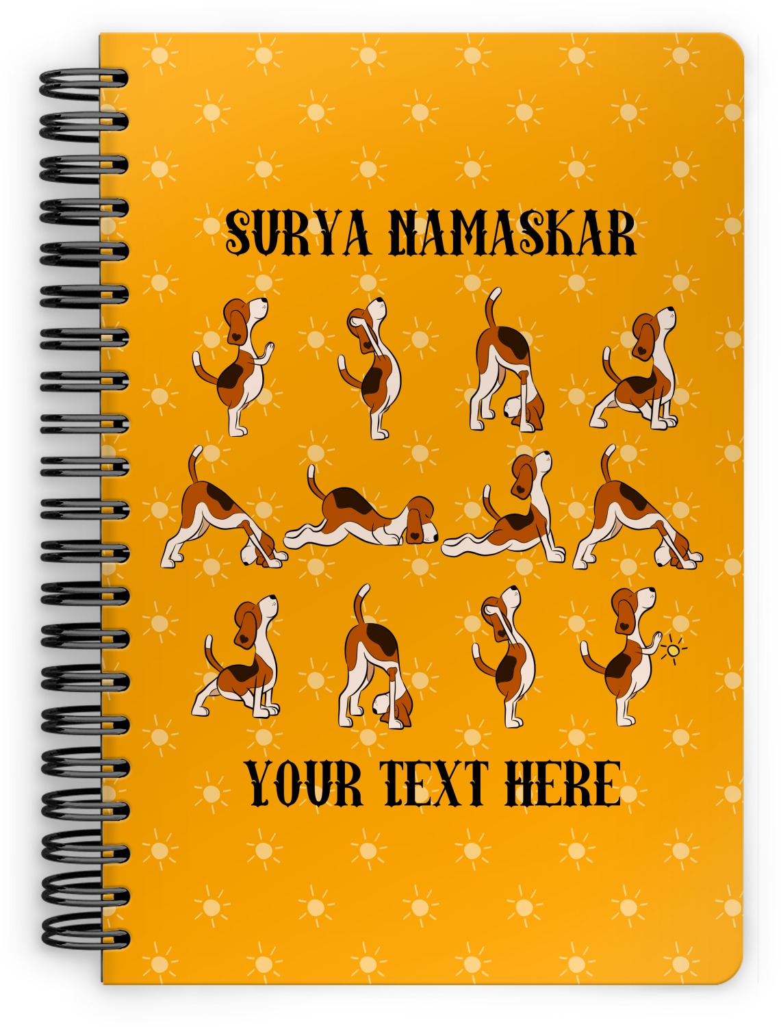 This design has a bright and happy background with little suns that are light yellow, while the rest is a slightly darker bright yellow. The main piece of the design is the set of adorable dogs doing yoga in several different positions. Your personalization goes above and below these graphics.