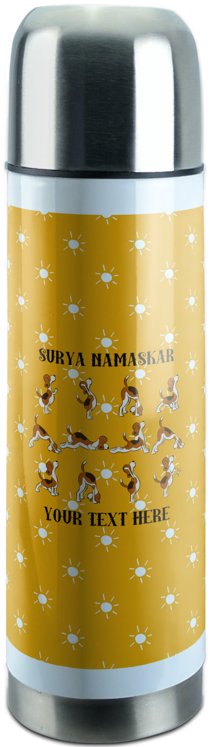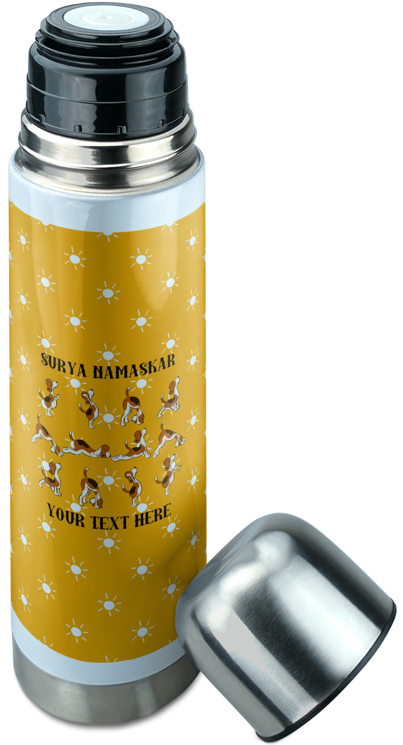 Manufactured from stainless steel, this thermos is built durably and double-walled insulated to preserve the temperature of your drink for hours. It also features a screw off lid that is made to also function as a small cup. Upon unscrewing this part of the thermos bottle, a pop-open, pour feature emerges. This feature allows you to slowly pour your beverage into your lid, ensuring a steady, controlled pour into your lid or other cup. With a capacity of 25 ounces, these large thermoses can hold several servings of your favorite beverage. Your customization is displayed all around the bottle with bright, vibrant color.