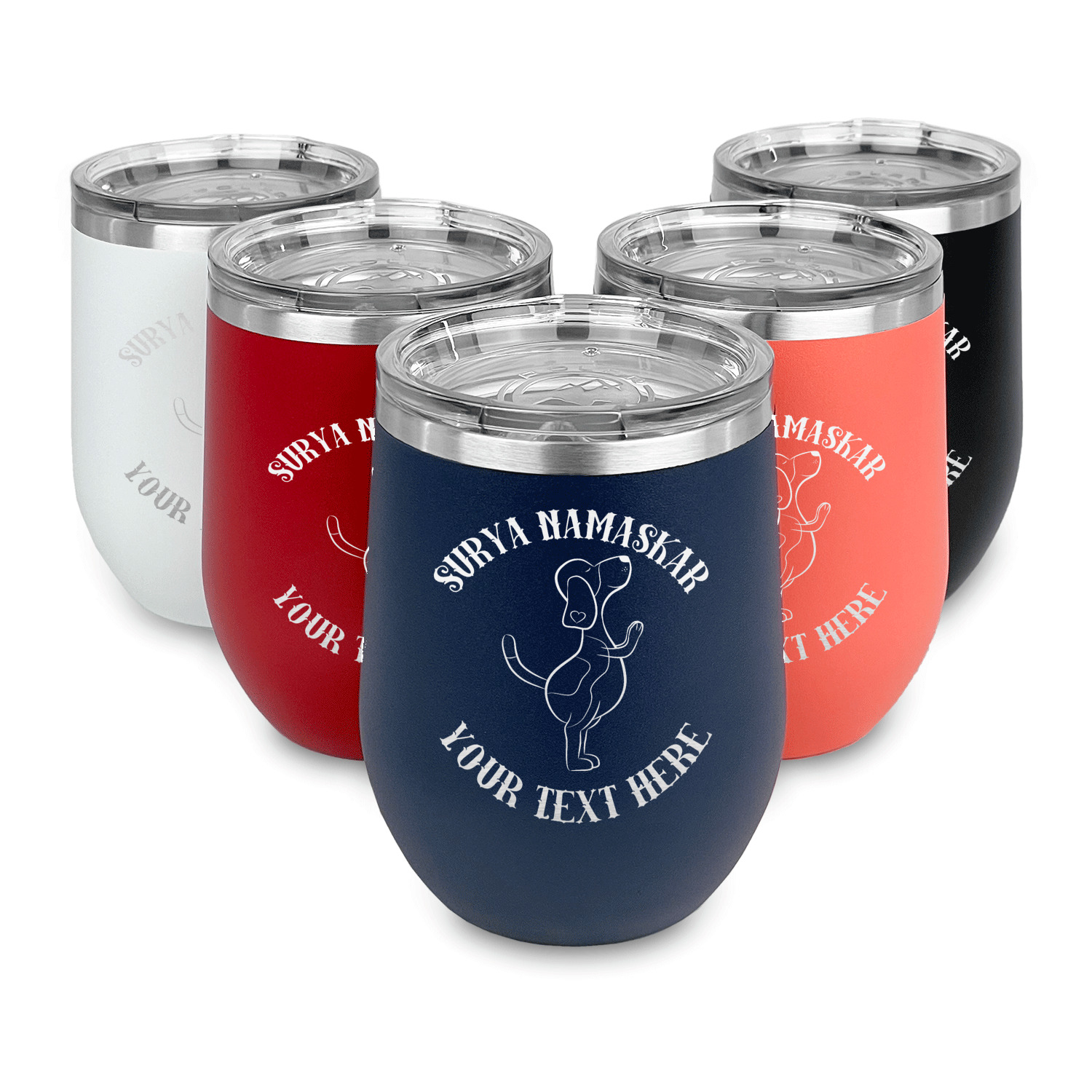 Design your wine tumbler with a cool graphic or quote. Even put your initials or monogram! These cups are laser engraved, which looks extra sharp on the metal tumbler.