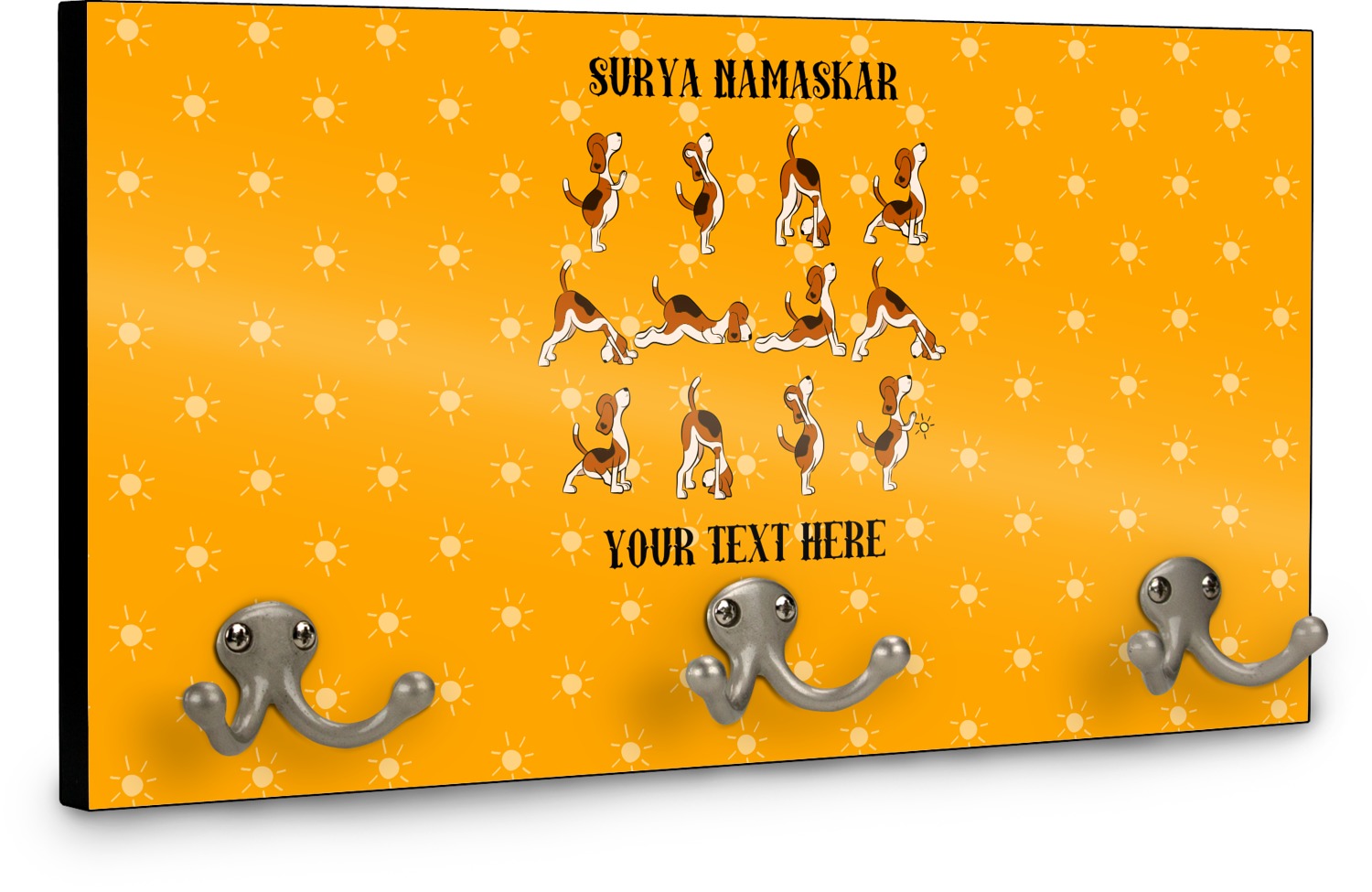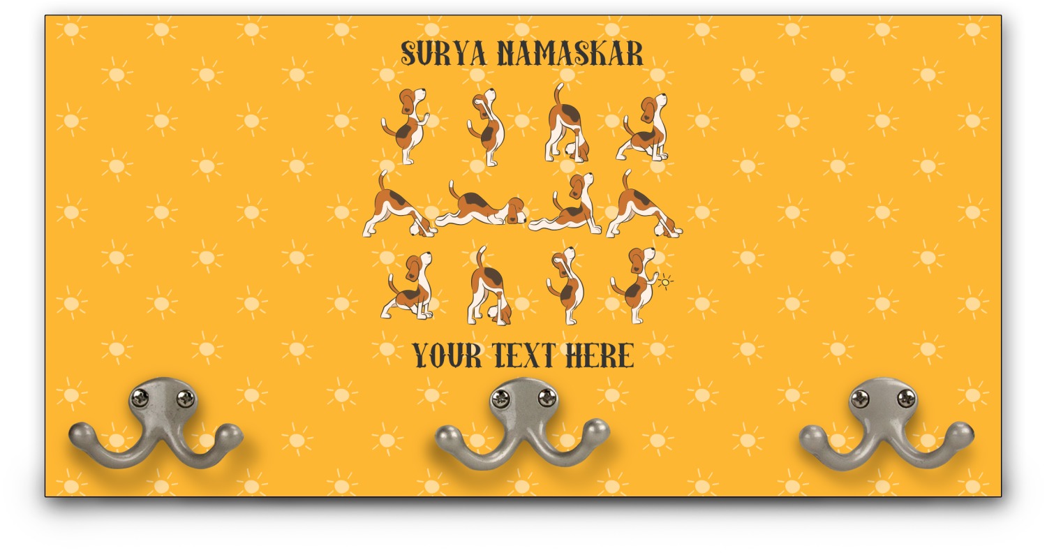 This coat rack is the perfect way to add some personality to your wall or entryway. The board is made of a strong maple that is approximately 16" x 8". The three 2-prong hooks are a sturdy metal that have three screws attaching them to the board. Your design is printed right onto the front of the board while the back and sides are a simple black.
