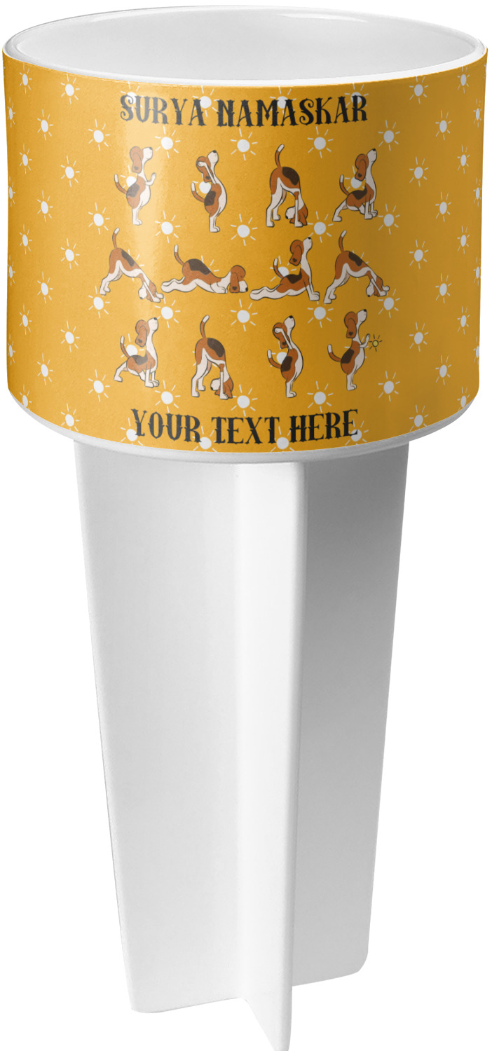 This cup holder has a large stake at its bottom that anchors it to the sand or ground below, while the cup holder rests above the stake. The entire drink holder is made of durable plastic and displays your customization around the cup holder portion. We sell these personalized beach spikers in two different colors: black and white.