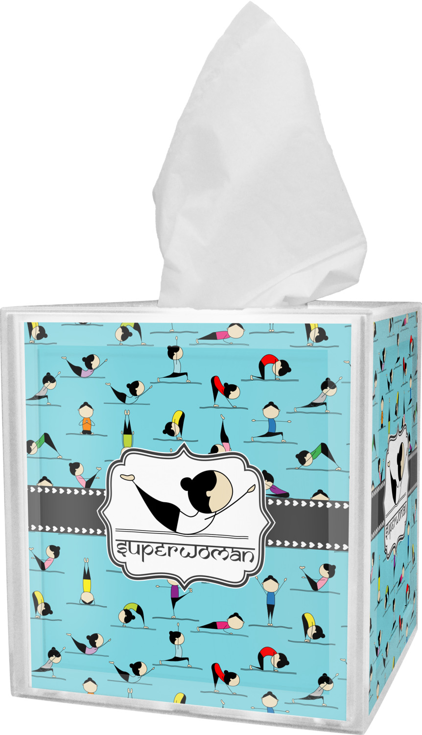 These tissue holders are built from durable acrylic and display your unique personalization on fine-quality vinyl inserts placed within the four sides and top. The box features two pieces, allowing you to easily switch out tissue boxes. On the sides, you'll find ridges that ensure the top and base fit securely in place. The bottom of these tissue box holders has four, rubber, non-slip pads to prevent the box from scuffing any surface you decide to display it on. Each box can fit a standard 5-by-5-inch box of tissues.