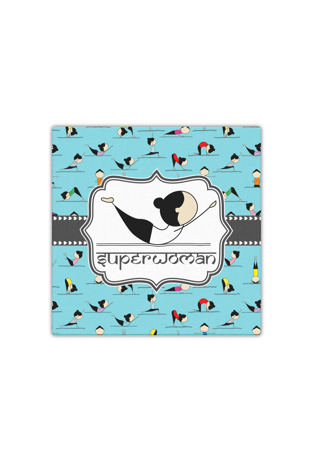 I have chosen to use a light teal background, with our hearts ribbon and our rectangular decorative frame. I chose the superwoman pose for my graphic along with the pose name for my personalization in a faux Sanskrit font.