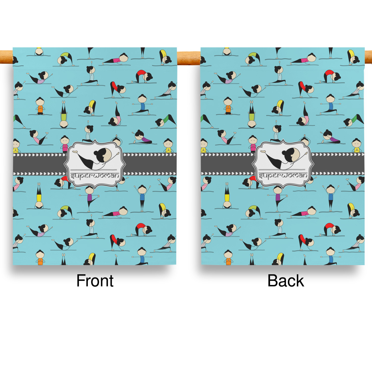These custom garden flags are made of a durable, double-ply, polyester weave, allowing them to withstand the elements year round. The small flags measure at approximately 12 by 18 inches. The large flags measure out to 28 by 37 inches. You can order these decorative flags with your customization printed on the front only, or the front and back.