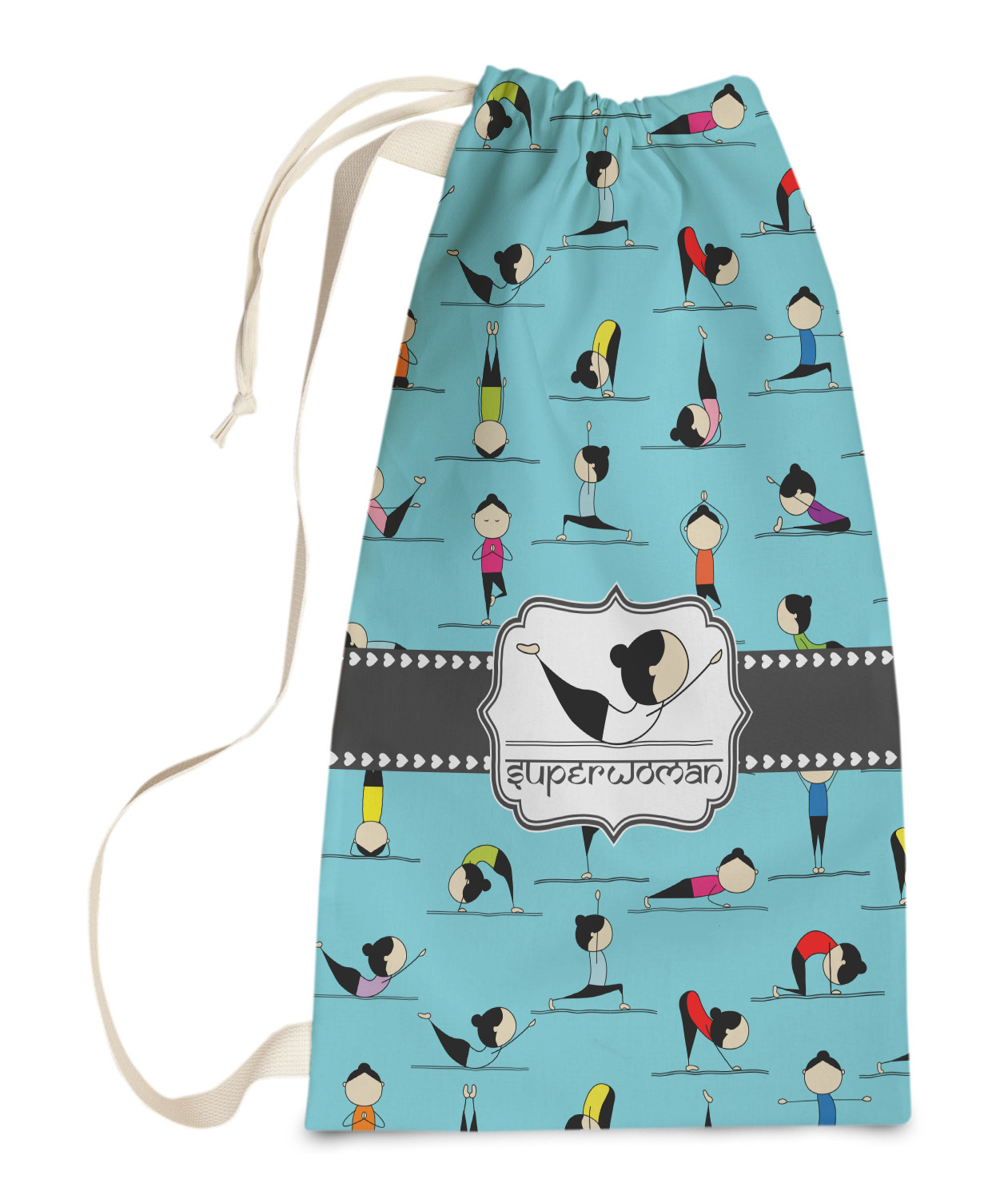 Carry your laundry in style with these customized laundry bags. Available in two sizes, featuring a natural colored woven strap and a cinch cord, these bags hold a lot of clothes or anything else you want to fit in them.