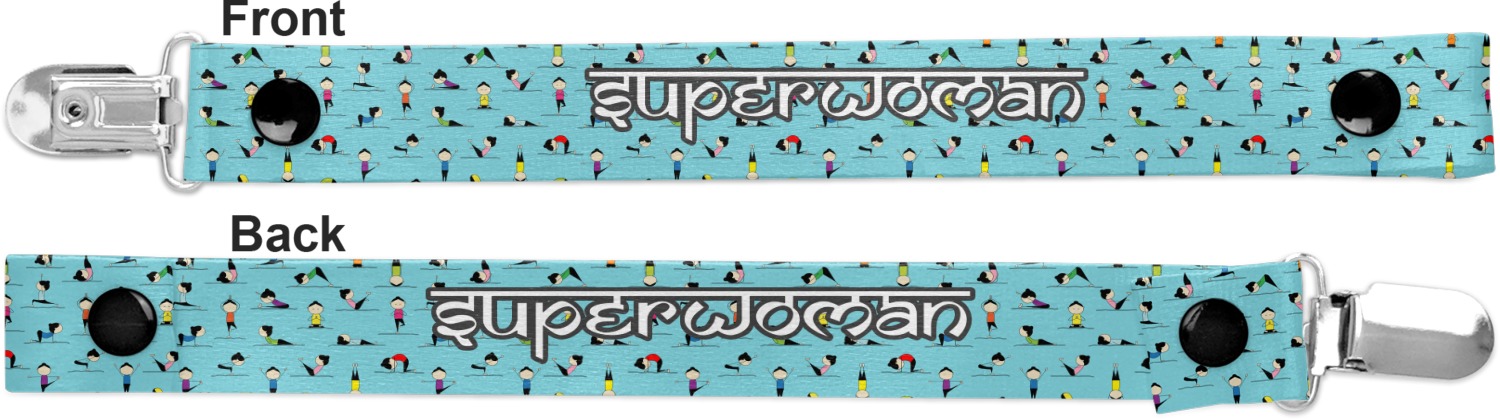 This personalized pacifier clip is the ideal size and measures at approximately 7.5 inches in length, when either end is snapped closed. On one end, you'll find a snap button. This button of your baby's pacifier holder is what can be attached to their pacifier to hold is securely in place. Simply open the snap, slip it through the pacifier opening, and snap it back into place. On the opposite end of this baby pacifier holder, you'll find a metal clip that can secure to a baby's collar or sleeve. This clip ensures that the strap stays in place, and that your baby's pacifier is always on hand.