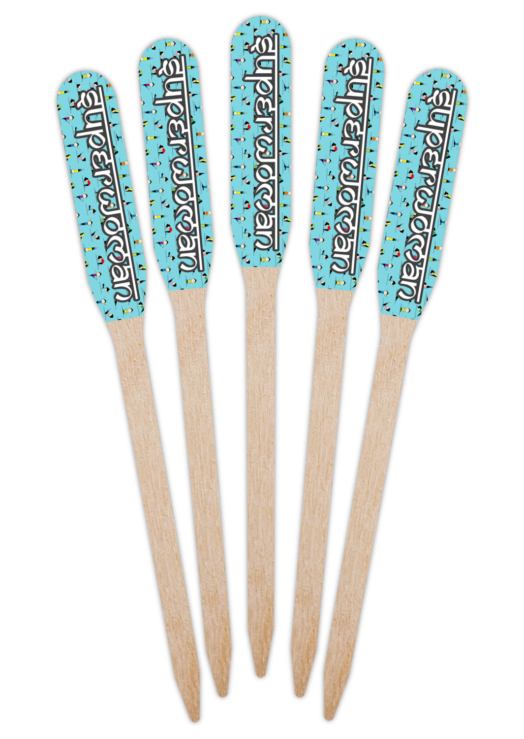 Our paddle style food & drink picks are available in 2 print styles - single sided and double sided.