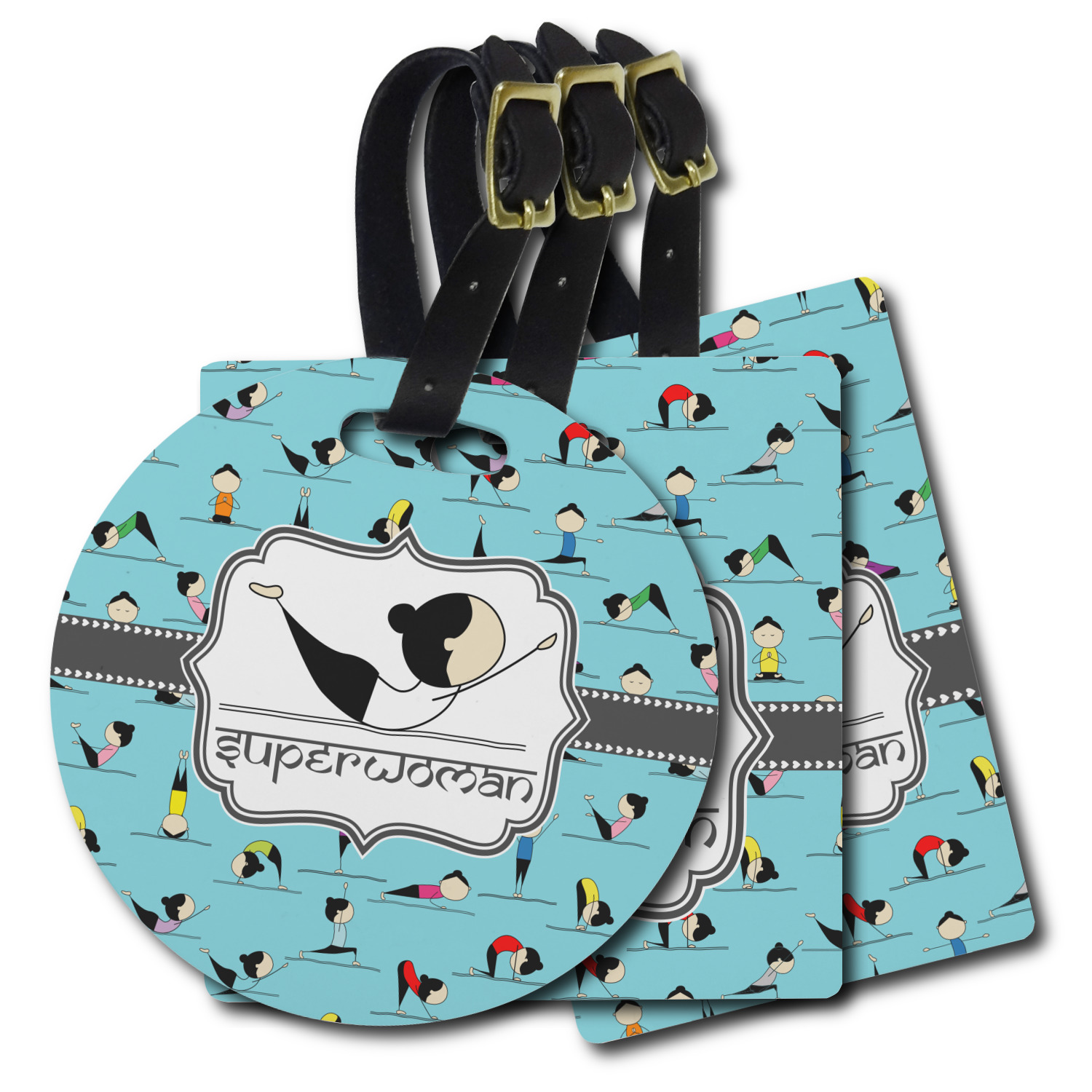 These personalized bag tags are sold in a variety of shapes, so that you may find the product that meets your vision exactly. We sell a round luggage tag, which measures at approximately 4" x 4". Our square luggage tag is about 3.5" x 3.5", while our rectangular version is 2.75" x 4 ".