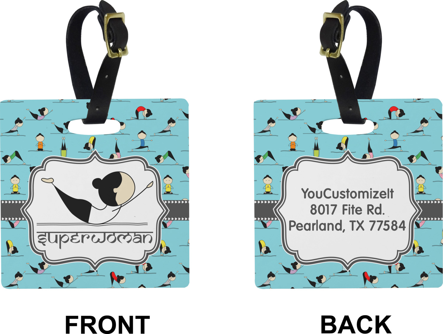 These cute luggage tags are made of a fiber-reinforced, UV-resistant plastic, making them waterproof and durable enough for both everyday use and the rugged adventures of any traveler! A leather strap with holes and a buckle is included with your purchase and can be used to attach your custom luggage tag to any suitcase, backpack, or duffel bag. You can design these travel tags as you wish; your customization will be displayed across the front, while the back will show as little or as much personal information as you want.