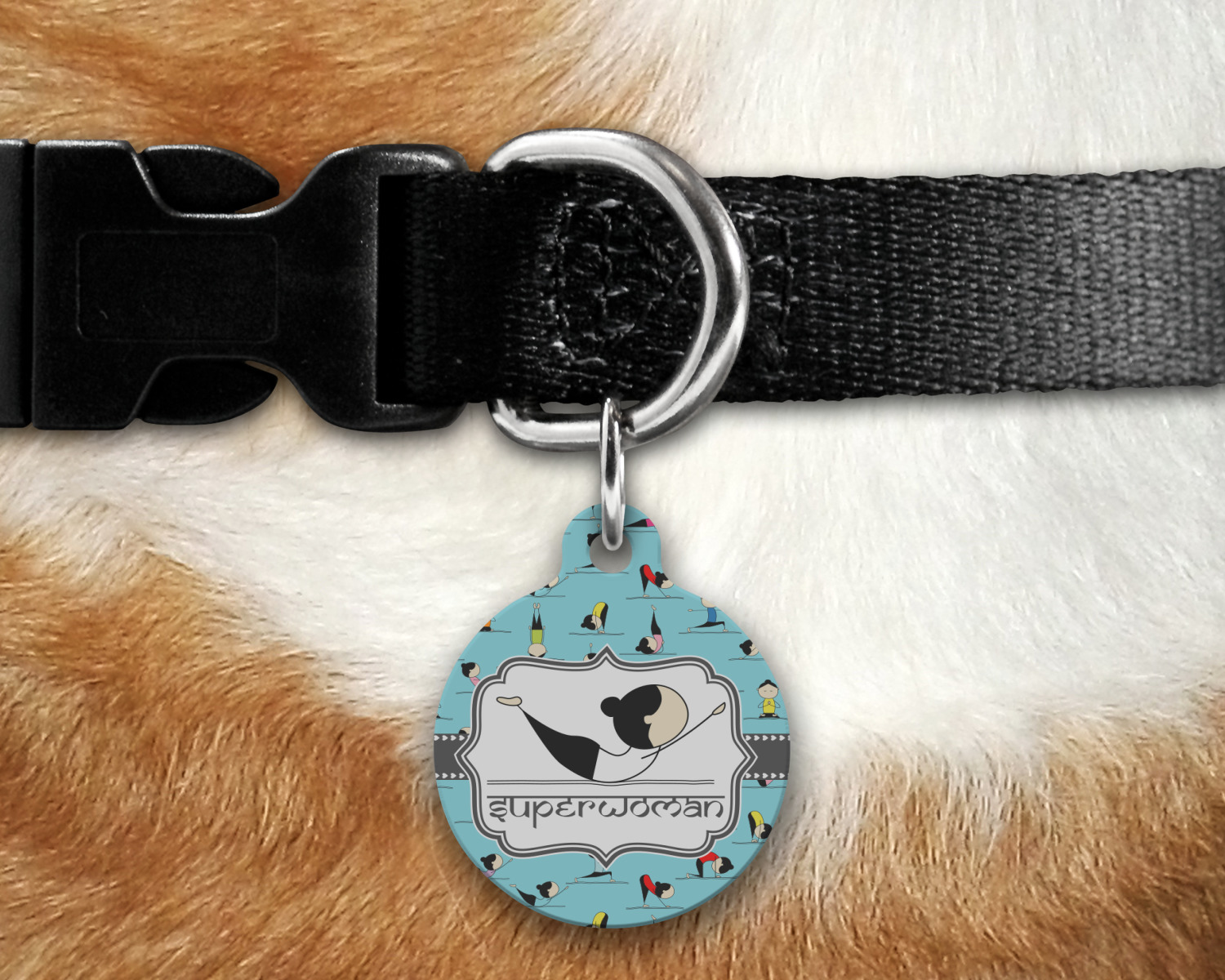 Go ahead; skip the monotony of plain pet ID tags with your very own, customized & personalized, round pet tag! This pet ID tag, fitting for both cats and dogs, will catch the eye of any onlooker (humans, canines, and felines, alike!) and accentuate your pet's individual personality.