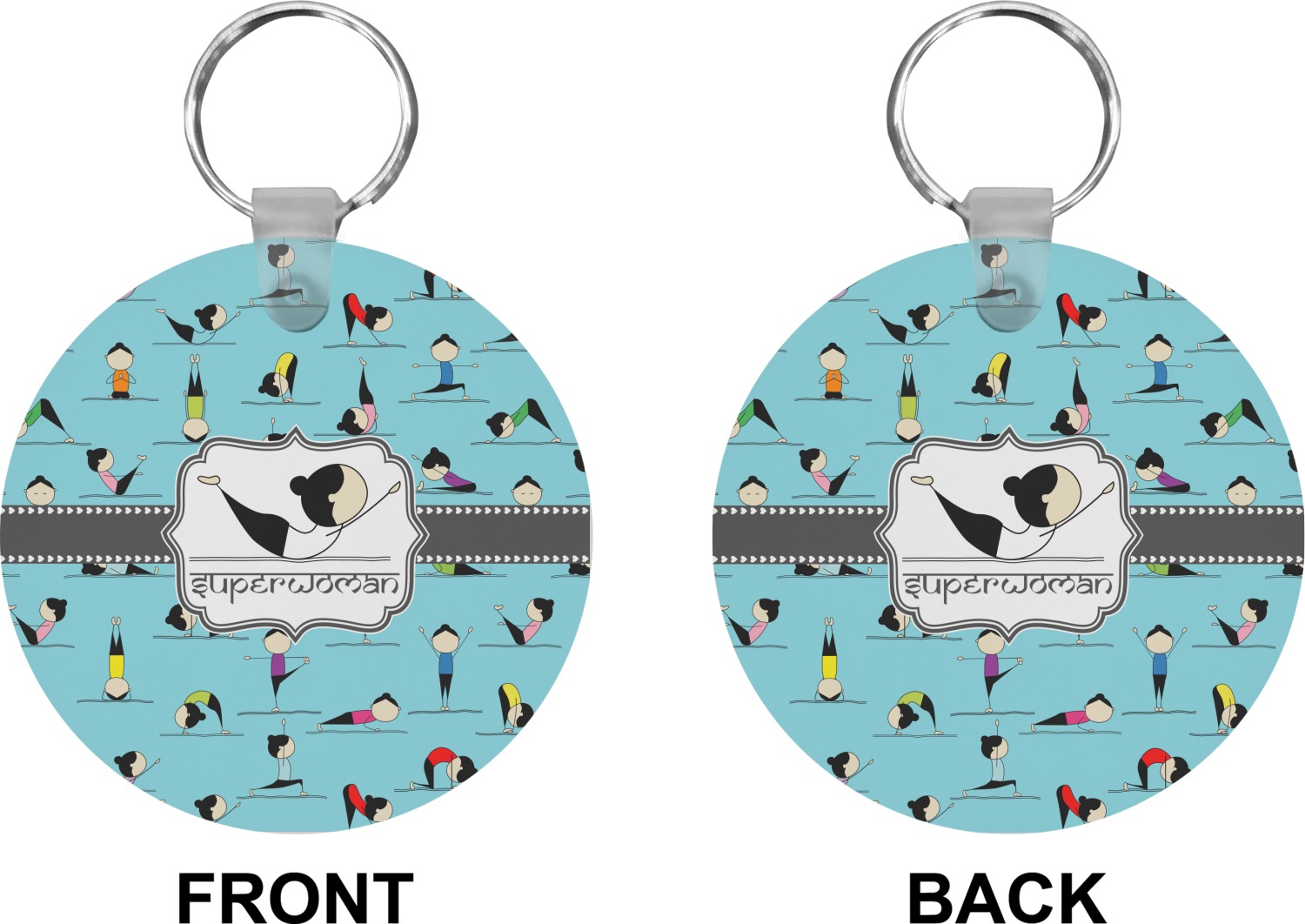 Our personalized keychains attach to the included metal, split key ring with a plastic, removable snap. Since a metal ring is included with your purchase, you have the liberty to keep your keys together on the ring, with or without your unique keychain. We offer this keychain in three different shapes: circle, heart, or diamond. We print your personalized design(s) on both sides of the key chain, and the surface has a glossy, reflective finish that only emphasizes your design. Each keychain is approximately 2.25 by 2.25 inches.