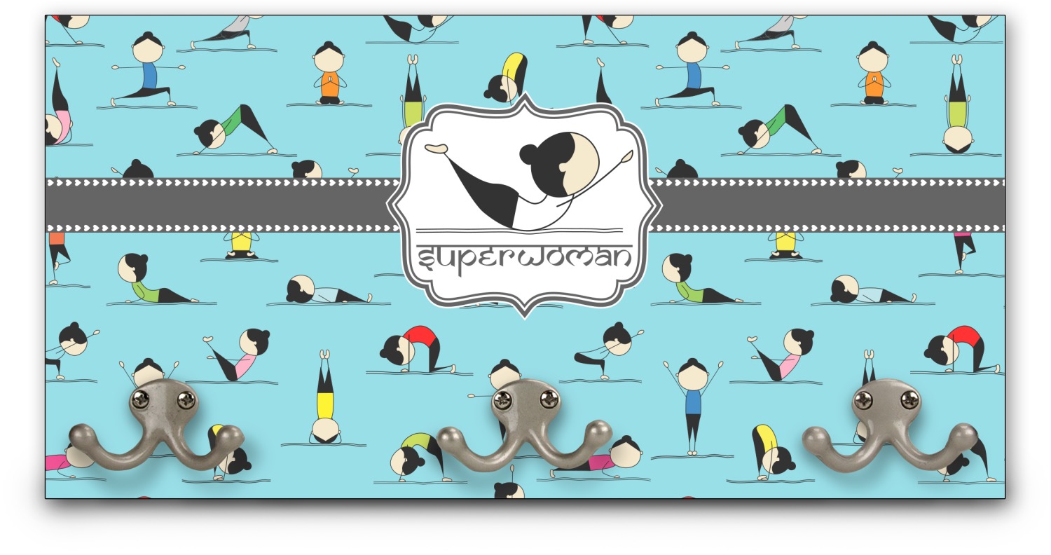 This coat rack is the perfect way to add some personality to your wall or entryway. The board is made of a strong maple that is approximately 16" x 8". The three 2-prong hooks are a sturdy metal that have three screws attaching them to the board. Your design is printed right onto the front of the board while the back and sides are a simple black.
