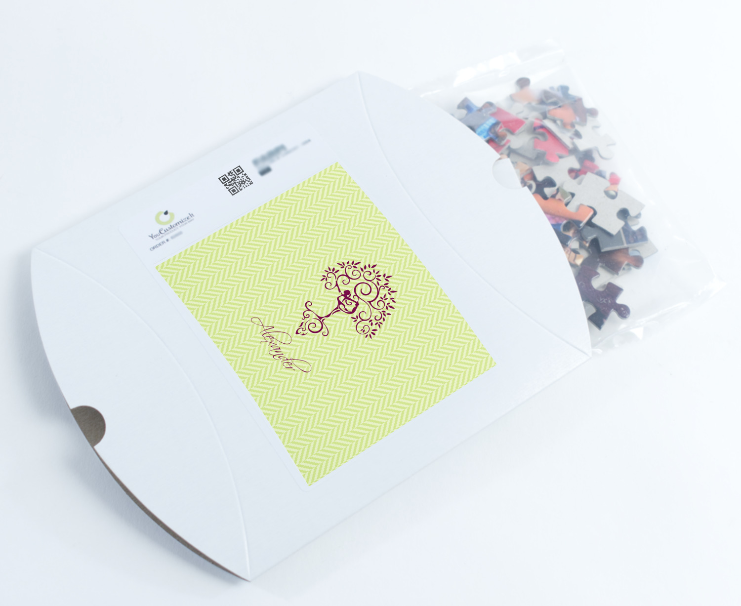 You can also upload your logo or art that you or your kids drew. To create more challenging jigsaw puzzles, you can create a pattern from with your logo or artwork. You can also add other elements such as text or personalization.