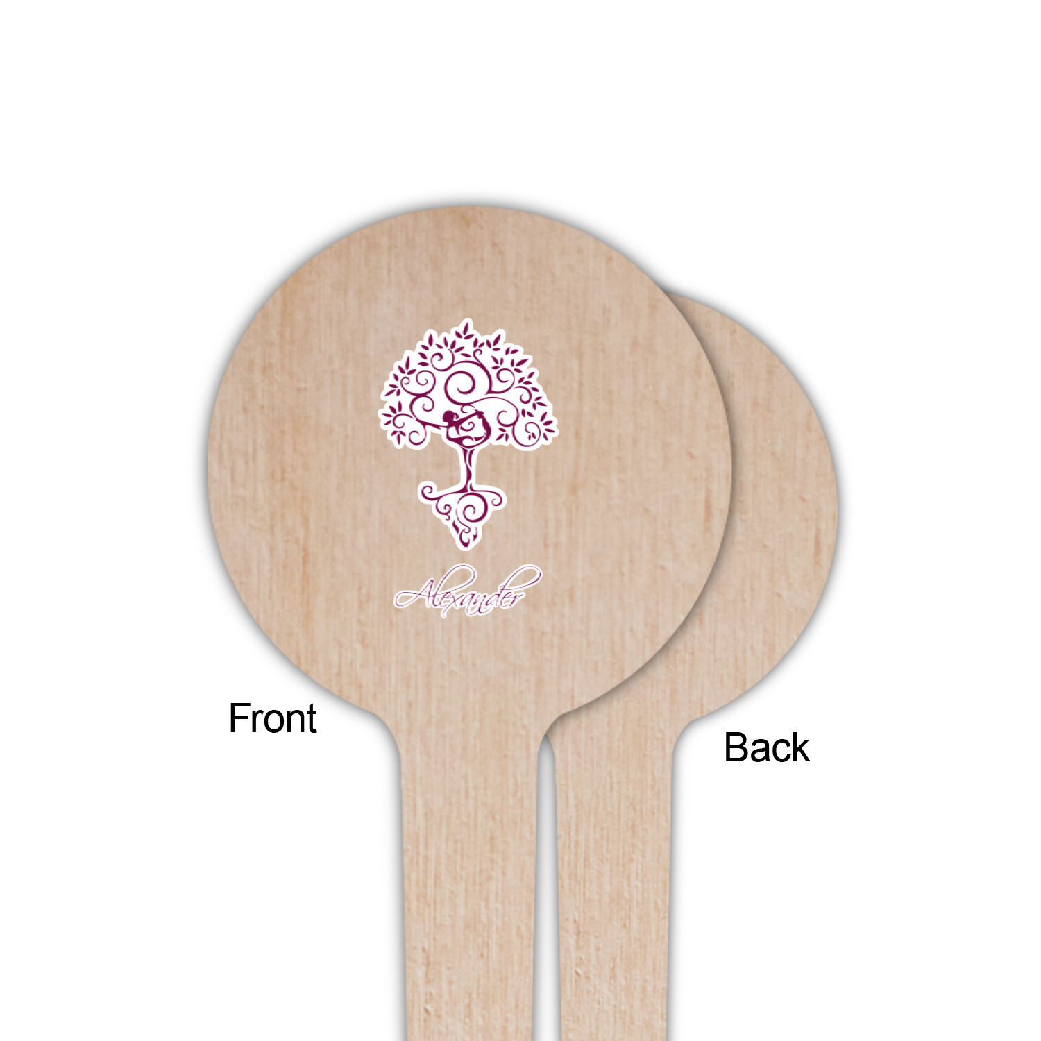 Tree Pose Designs for 4" Round Wooden Food Picks - Single-Sided
