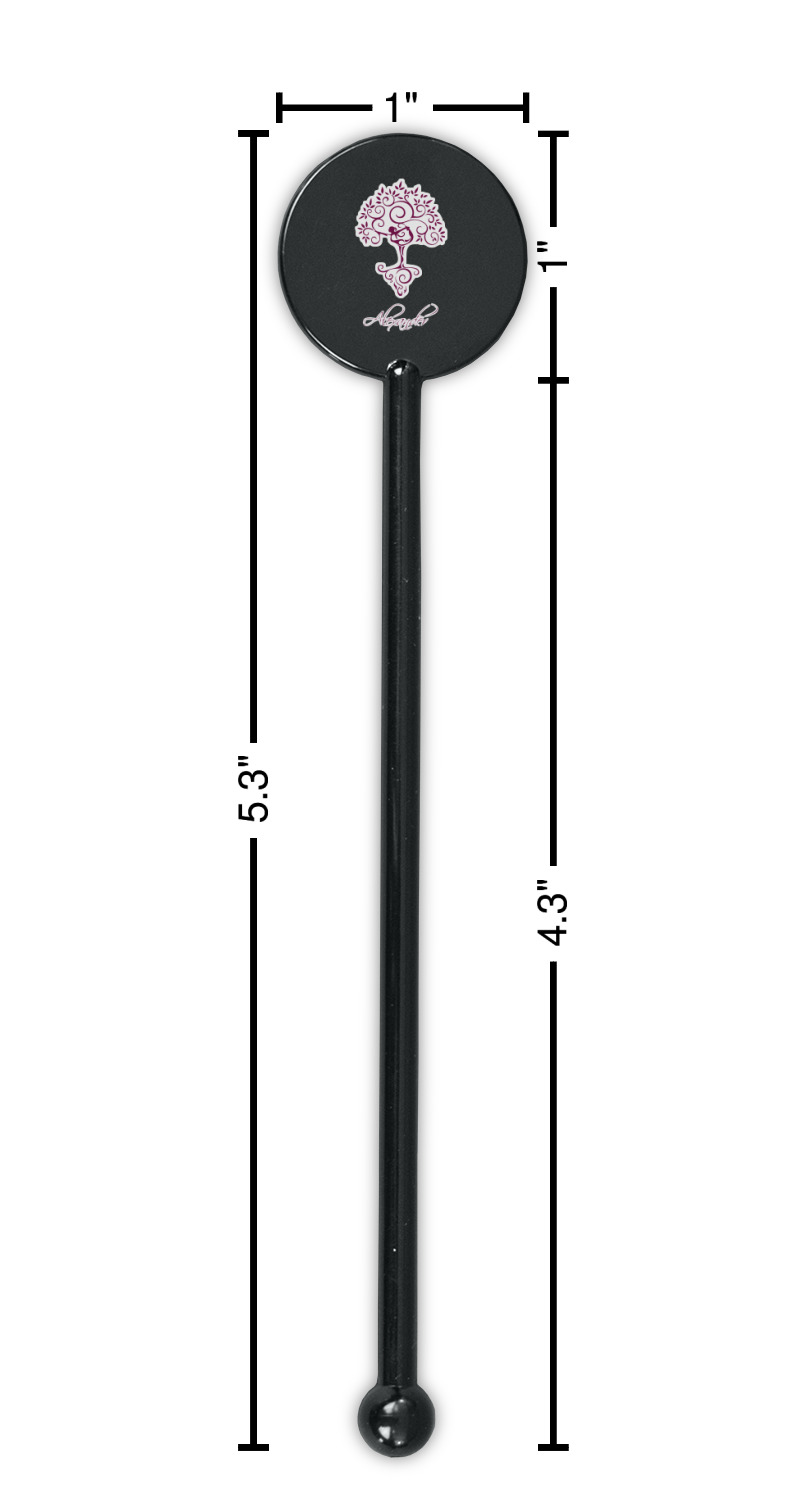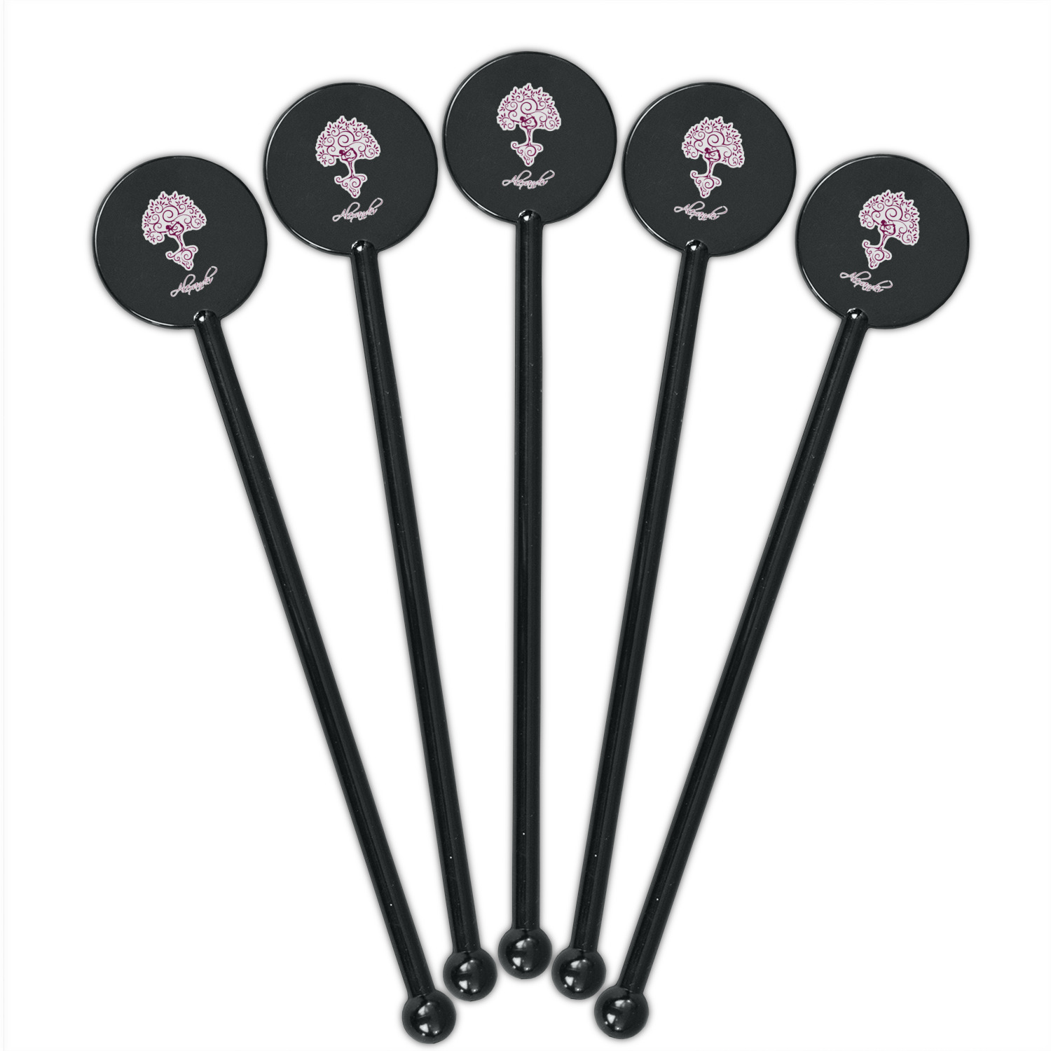 Tree Pose Designs for 5.5" Round Plastic Stir Sticks - Black - Double-Sided