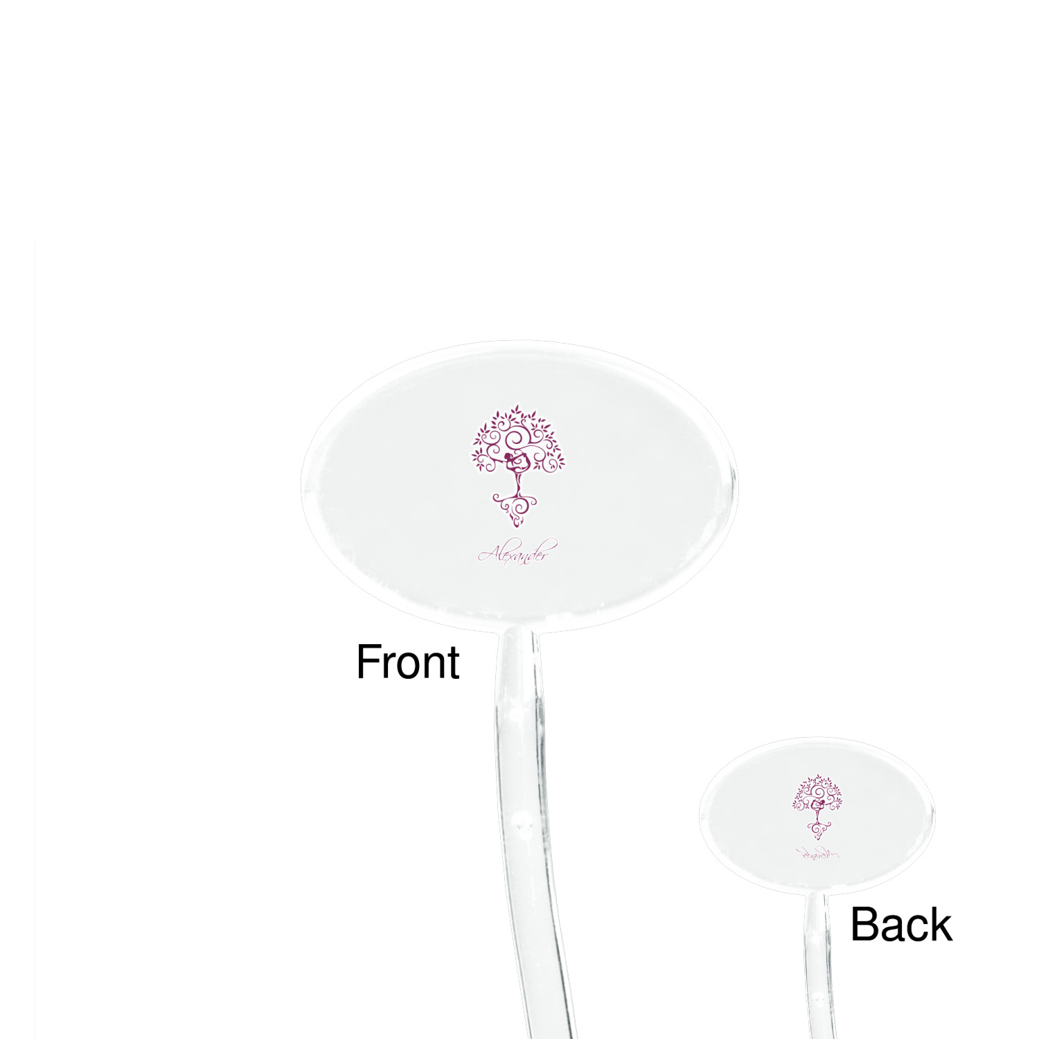Tree Pose Designs for 7" Oval Plastic Stir Sticks - Clear