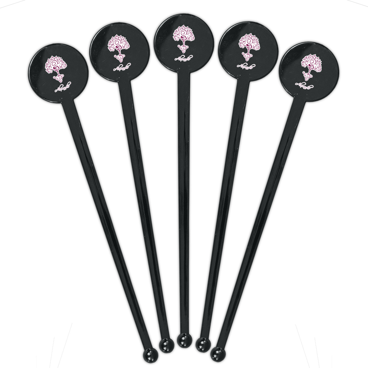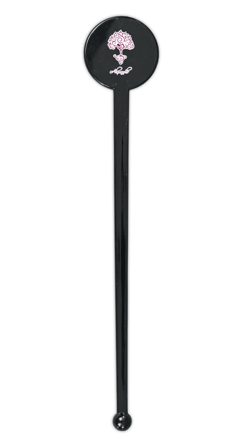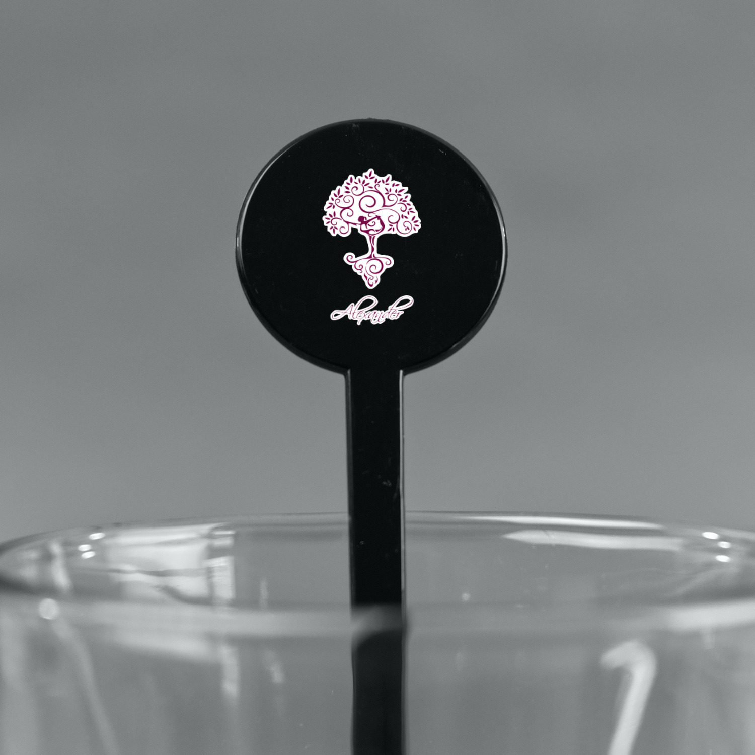 Tree Pose Designs for 7" Round Plastic Stir Sticks - Black - Single-Sided