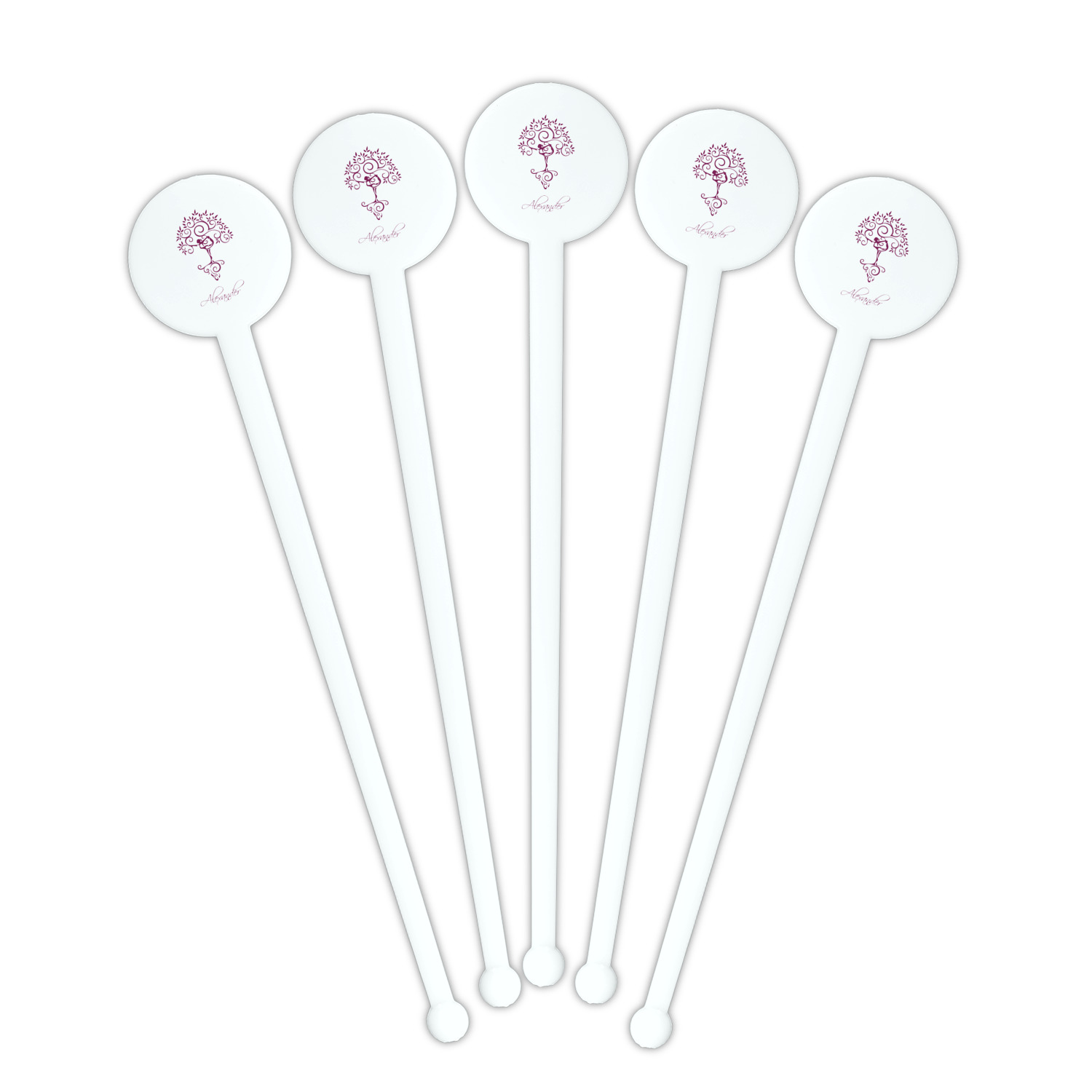 Tree Pose Designs for 7" Round Plastic Stir Sticks - White - Single-Sided