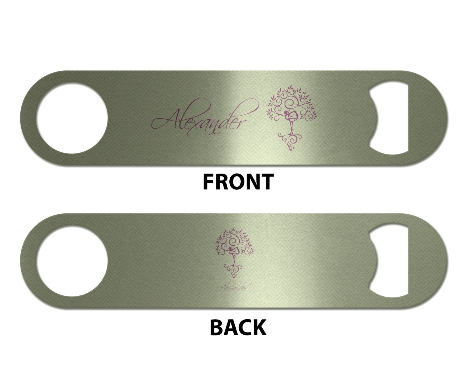 Stop struggling with the caps or your bottled beverages by purchasing one of our personalized bottle openers! These wrench-like custom bar blades are built to last. Customize one for your home's bar, or as a practical gift for a loved one!
