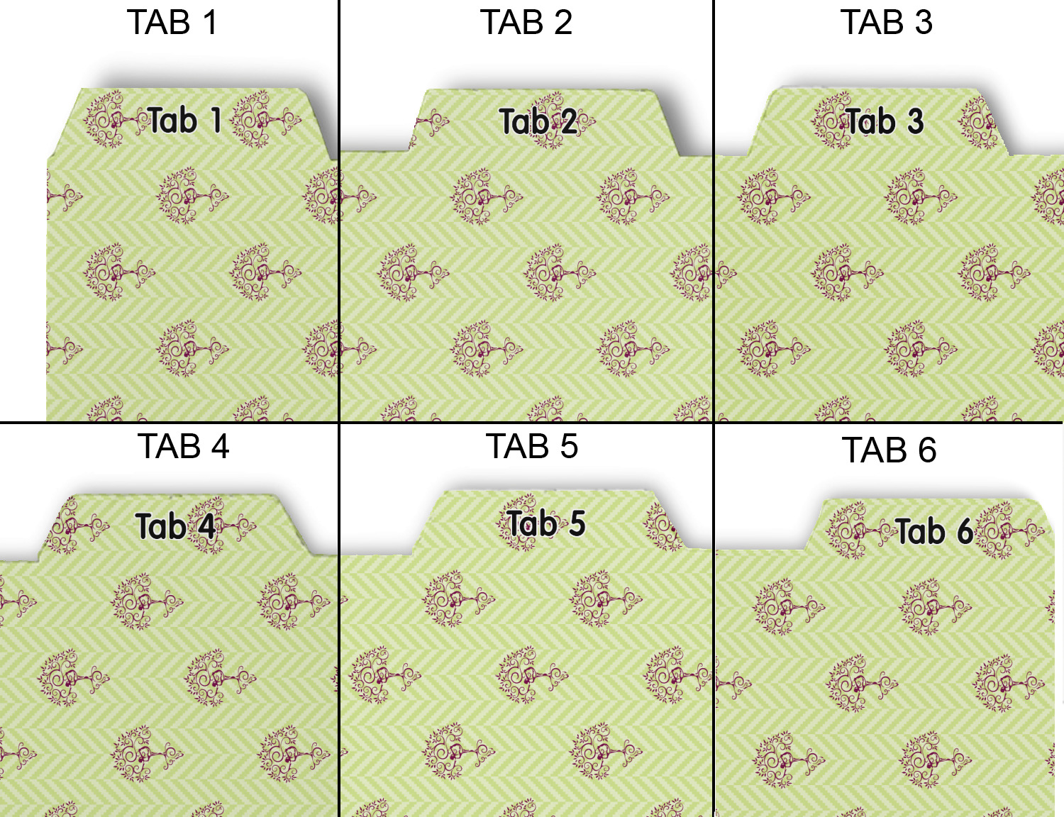 Whether you use binders at school or at work, we have designs to suit all of them. Available in 5 or 6 tab sets, you are sure to find a set to suit your needs. The back of each one is white and can be used to take notes, write vital information on, etc.